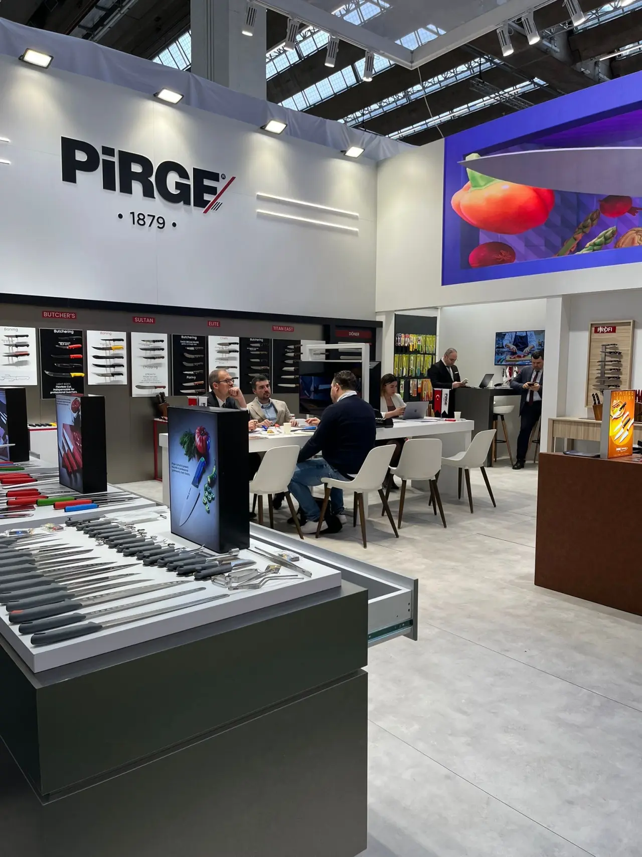 Pirge standında, el işçiliği ile kusursuz tasarımı buluşturan Handmade serisinin yeni renkli sap tasarımları yoğun beğeni topladı. Bu seride yer alan bıçaklar, 135 katmanlı Damascus çeliği ve 1500 yıllık meşe fosili sap gibi nadir ve özel malzemelerle üretilmiş. Ziyaretçiler, bu ürünlerin güzel estetiğini ve keskinliklerini deneyimleme fırsatı buldular. Yüksek kaliteli tasarımları sayesinde Pirge, dünya mutfak trendlerine önemli katkılar sağlıyor. Ürünlerin hem profesyonel aşçılar hem de günlük kullanıcılar için kullanışlı olduğu vurgulanarak, stantta gerçekleştirilen tanıtımlar büyük ilgi uyandırdı.