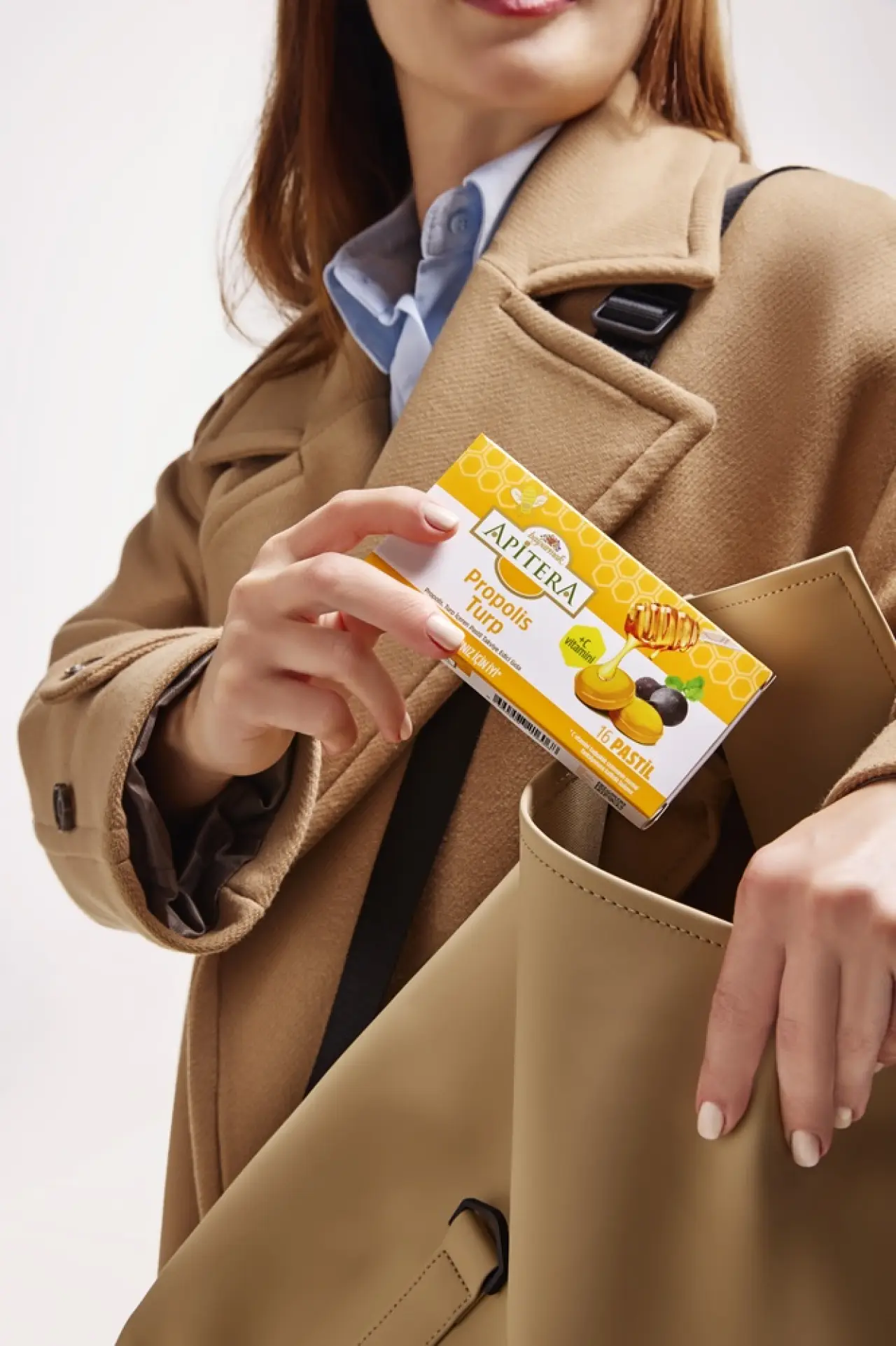 Apitera'nın başarılı pastil ürünü, geleneksel karakavak propolisinin, modern tüketici talepleriyle uyumlu hale getirilmesiyle oluşturulmuştur. Radikal bir değişim yerine, geçmişteki bilgi ve değerlerin korunduğu, ancak çağın gereksinimlerine uygun olarak geliştirilmiş bir inovasyon sunulmuştur. Harika bir tat uyumuna ve kullanışlılığa sahip olan ürün, günlük yaşamda kolaylıkla kullanılabilir. Apitera Propolis ve Turp İçeren Pastil, bu dikkat çekici tasarımıyla, hem lezzetli hem de sağlıklı bir alternatif arayan tüketicilere hitap ediyor.