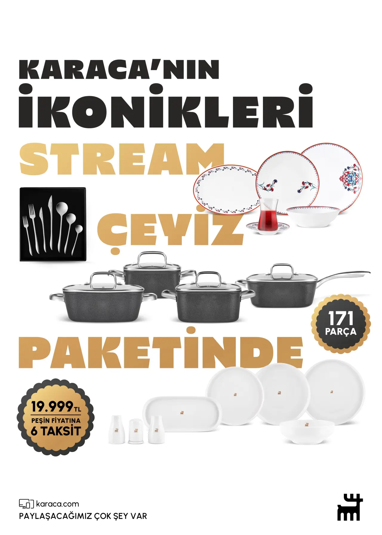 Karaca, kaliteli ürünleri herkese uygun fiyatlarla sunarak, kullanıcı dostu ödeme koşullarıyla bir alışveriş deneyimi sağlıyor. 19.999 TL’den başlayan fiyatlarla çeşitli çeyiz paketi alternatifleri, tüketicilere daha fazla seçenek sunmaktan mutluluk duyuyor. Üstelik, bu ürünleri peşin fiyatına 9 taksit seçeneği ile ayda yalnızca 11.111 TL gibi cazip bir ödeme planı ile edinmek mümkün. Bu da, kullanıcıların hayallerindeki çeyiz paketine ulaşmalarını daha da kolaylaştırıyor.
