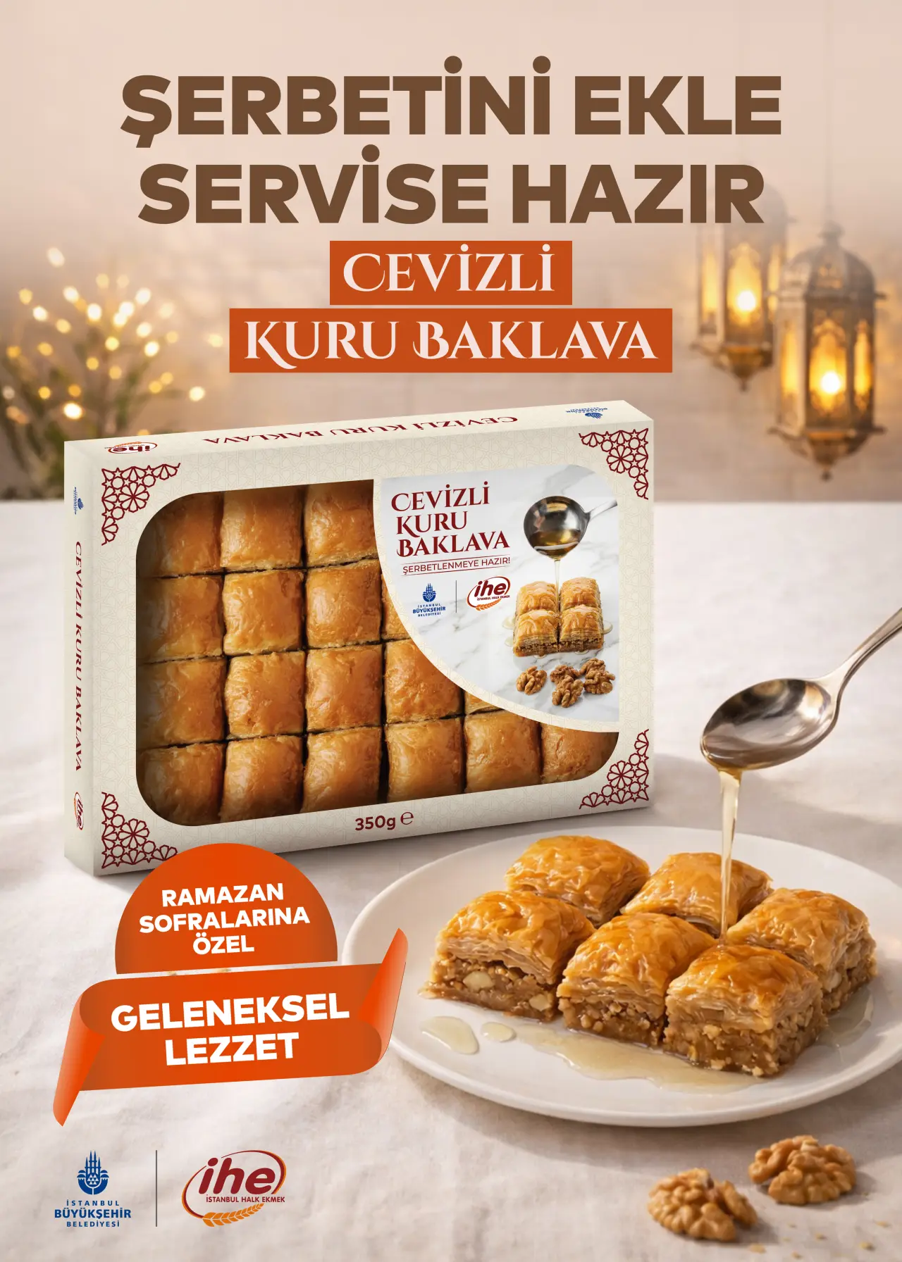 İstanbul Büyükşehir Belediyesi tarafından kurulan İstanbul Halk Ekmek, sosyal belediyecilik anlayışı çerçevesinde yeni bir lezzet sunarak İstanbullulara baklavayı tanıttı. Ramazan ve bayram sofralarının vazgeçilmez tatlısı olan baklava, İHE'nin geliştirdiği Cevizli Kuru Baklava ile artık daha erişilebilir hale geldi. Kaliteli ve ekonomik ürün sunma vizyonunu tatlı kategorisine de yansıtan İstanbul Halk Ekmek, yeni ürünüyle toplam ürün sayısını 58'e çıkarmış oldu.