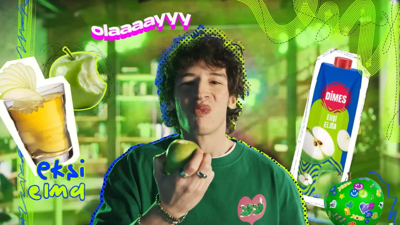 DİMES, yenilikçi iletişim tarzını yeni reklam kampanyasında da ortaya koyuyor. “Hadi biraz da Ananası/Vişneyi/Ekşi elmayı abartalım” sloganıyla, yalnızca lezzet değil, aynı zamanda renk, duygu ve enerji de birlikte ele alınıyor. Bu bütünlük “sende bi’tarz” ifadesi ile hedef kitleyle buluşuyor. Günlük yaşamda herkesin enerjisini sergileyen karakterler, izleyicinin bağ kurmasına olanak tanıyor.