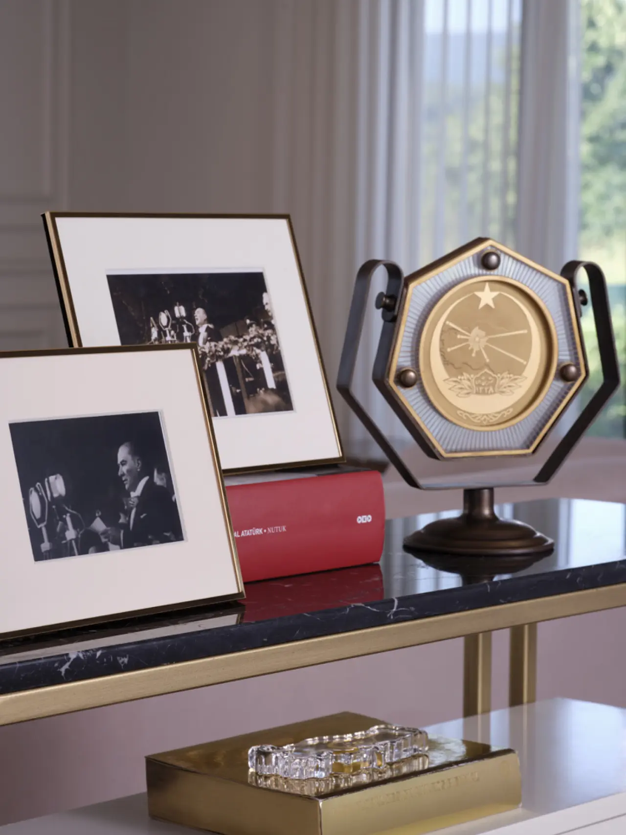 İstiklal Mikrofon, Türk milletinin milli mücadele ve bağımsızlık tutkusu ile Cumhuriyet tarihinin gelişimini simgeleyen özel bir tasarım olarak öne çıkıyor. Üzerindeki rölyef desenler tamamen el işçiliği ile yapılmış ve 24 ayar altın ile detaylandırılmıştır. Bu mikrofon, Mustafa Kemal Atatürk’ün 10. Yıl Nutku’nun yankılandığı anları simgeliyor ve bağımsızlık mücadelesinin önemini vurguluyor. İstiklal Mikrofon, Türk milletinin çağdaş değerlerle buluşmasının ve Cumhuriyet’in simgelerinden biri haline gelmesinin bir ifadesidir.