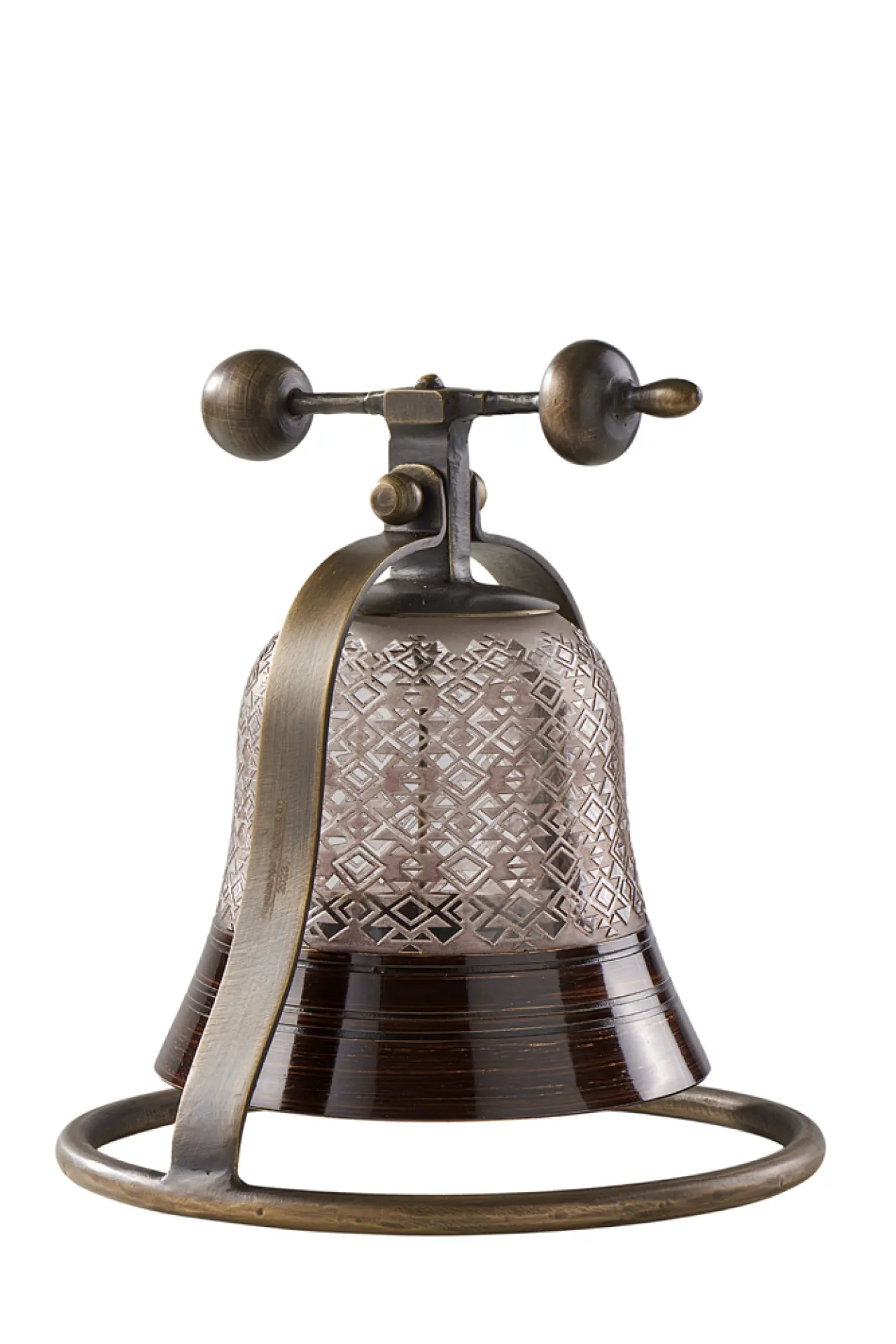 Cumhuriyet Çanı, Atatürk’ün “Egemenlik kayıtsız şartsız milletindir” ilkesi çerçevesinde tasarımın ruhunu yansıtıyor. TBMM’nin 23 Nisan 1920’deki açılışı sırasında çalan meclis çanından esinlenerek yapılan bu obje, el imalatı camdan üretilmiştir. Çanın üzerinde bulunan desenler, Anıtkabir’in tavanını süsleyen stilize edilmiş kilim motiflerinden oluşmaktadır. Bu zarif detaylar, meclisi toplayan Atatürk’e, Anadolu halkına ve Cumhuriyet’in kuruluşuna bir saygı içermektedir. Cumhuriyet Çanı, ulusal egemenliğin sürekli var olacak sesi, camın estetik yapısı içinde hayat buluyor.