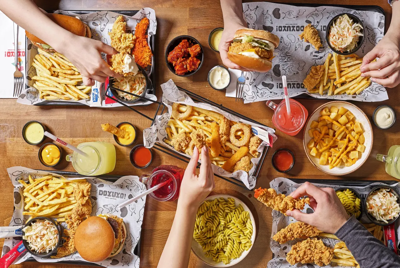 Paylaşım odaklı bir deneyim sunan Twin Box, özellikle gruplar için uygun bir seçenek. İki adet Tenders Royale Sandviç, dört adet Chickers ve soslu soğan halkaları gibi lezzetlerle zenginleştirilen bu menü, 1 litre içecek ile birlikte sunuluyor. Paylaşmak amacıyla hazırlanan bu menü, kalabalık arkadaş buluşmalarında, sıcak bir atmosfer yaratmayı sağlıyor. Doyuyo’nun ikonik lezzetleri, cömert porsiyonları ile bir araya gelerek unutulmaz bir deneyim sunuyor.