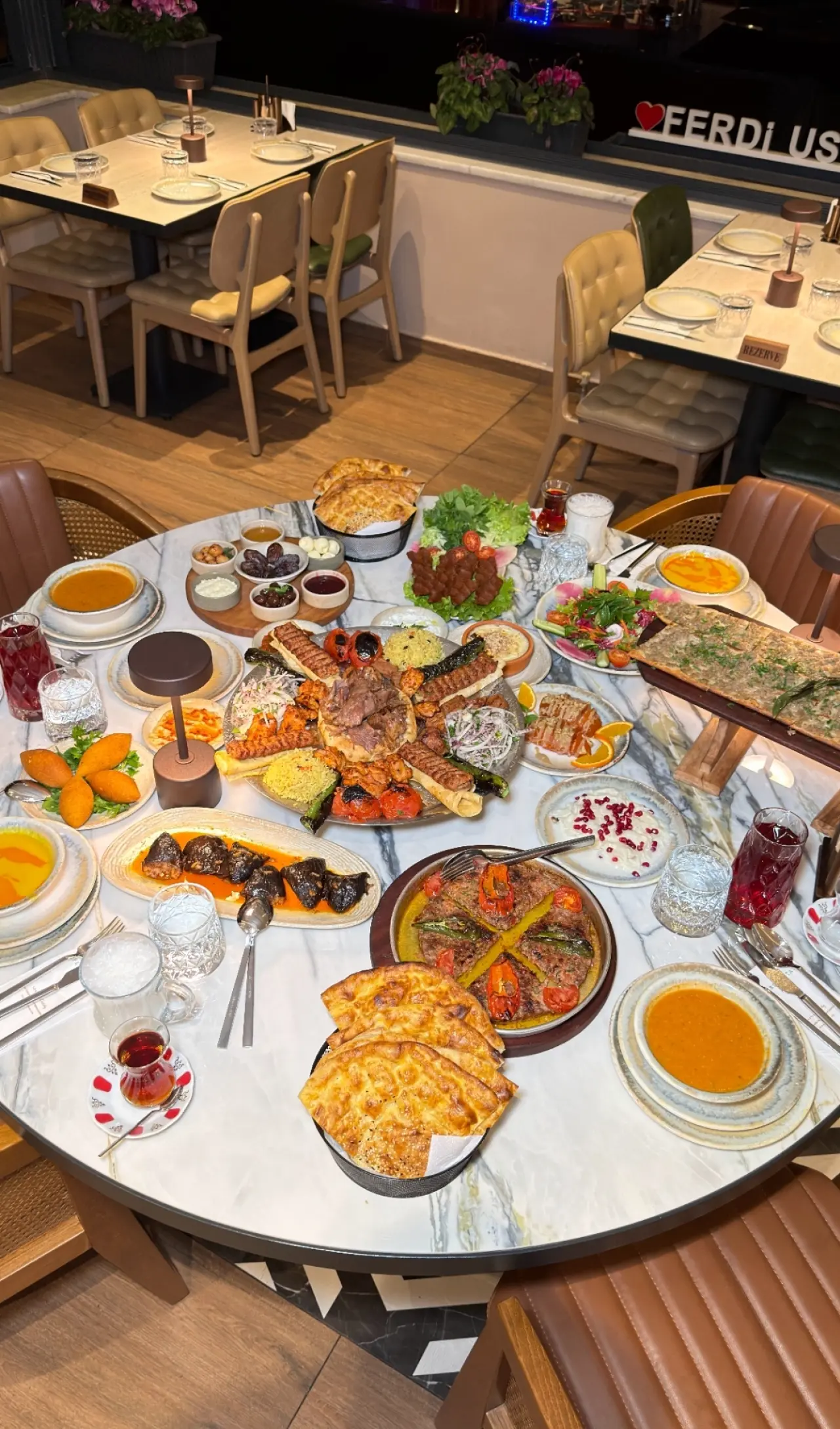 Konyalı Ferdi Usta, bu Ramazan'da iftar sofralarına zengin bir menü ile damgasını vuracak. Özellikle Konya mutfağının asli öğeleriyle süslenmiş Ramazan menüsü, hem aile buluşmaları hem de kurumsal iftar organizasyonları için misafirlere hitap ediyor. Sofraların vazgeçilmez unsuru olan paylaşım kültürü ve çeşitlilik, bu özel menüde oldukça belirgin bir şekilde hissediliyor. İftar menüsünün kişi başı maliyeti 1900 TL olarak açıklanırken, bu fiyat, misafirlere sunulan geniş lezzet yelpazesini de gözler önüne seriyor.