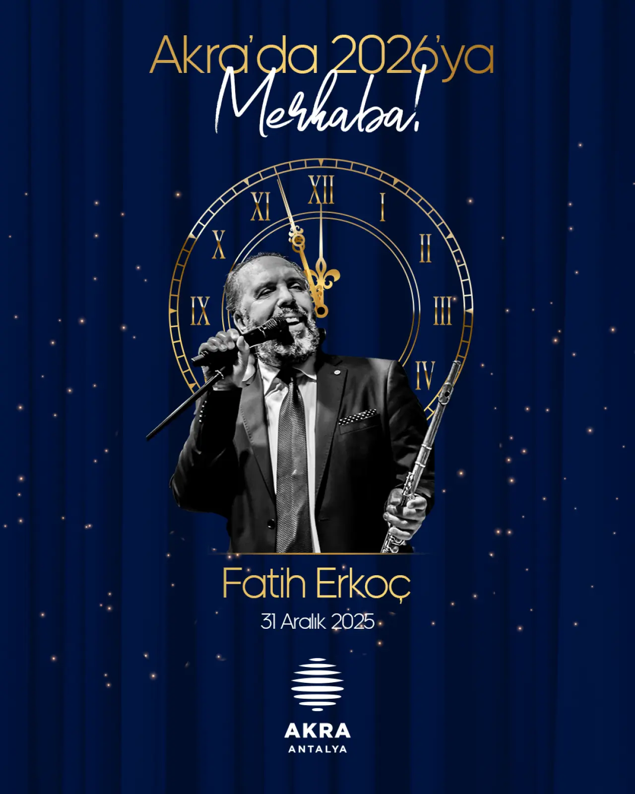 Akra Hotels’in Akra Antalya ve Akra Kemer tesisleri, misafirlerine muhteşem bir yılbaşı gecesi sunmak için hazırlıklarını tamamlamak üzere. Akra Antalya’da Türk pop müziğinin önde gelen isimlerinden Fatih Erkoç ve ekibi sahne alırken, Akra Kemer’de ise Ahmet Baran ve Orkestrası yılbaşı kutlamalarına coşku katacak.