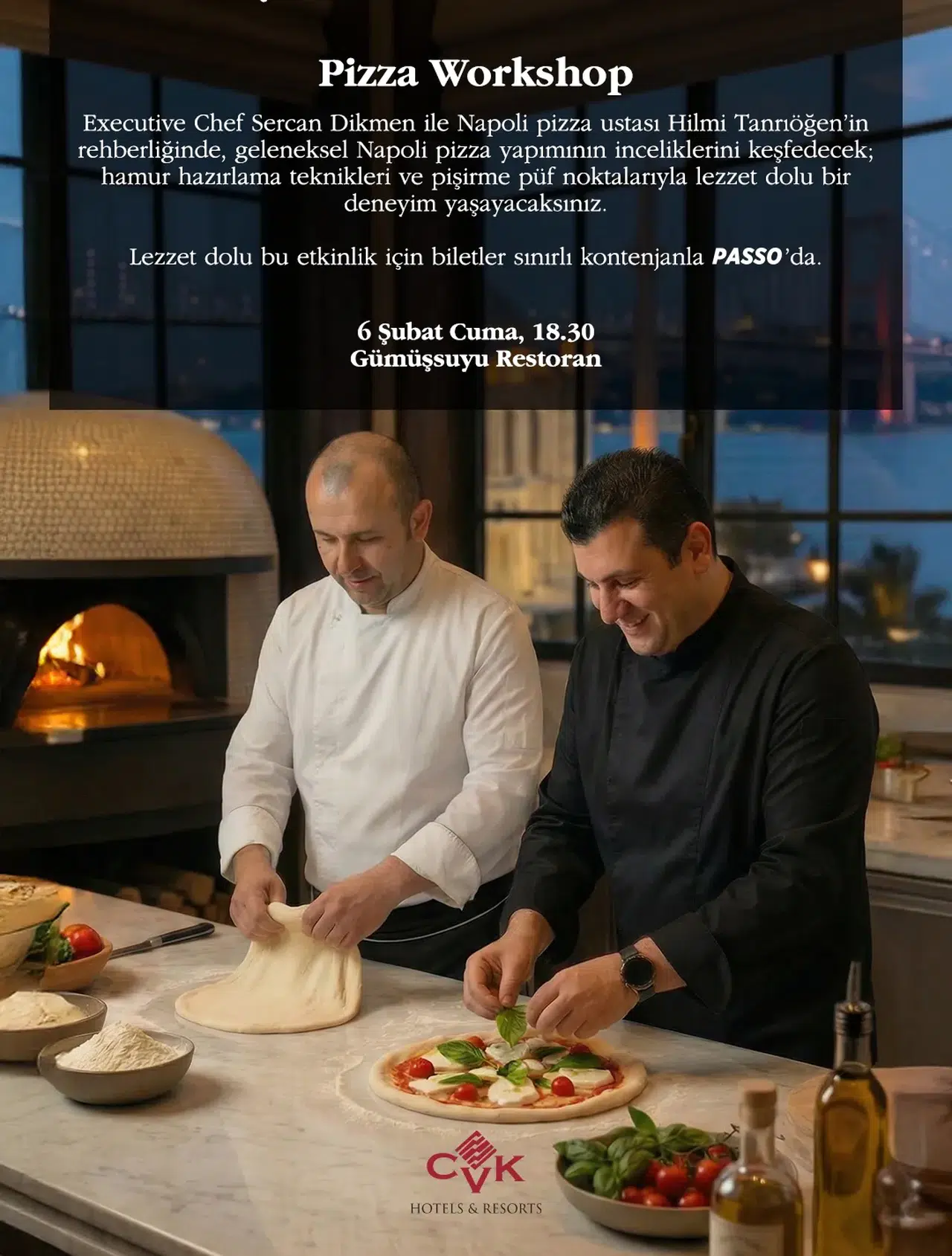 “CVK Mutfak Buluşmaları”, sadece bir mutfak etkinliği değil, aynı zamanda bir paylaşım platformu olarak kurgulanmış durumda. “Napoli Pizza Workshop”, profesyonel bir mutfak tecrübesi yaşamak isteyen gastronomi meraklılarına hitap edecek şekilde tasarlandı. 6 Şubat Cuma günü saat 18.30’da Gümüşsuyu Restoran’da gerçekleştirilecek bu etkinlik, özellikle sınırlı sayıda katılımcı ile düzenlenecek. Katılımcılar, lezzet ve deneyimi bir araya getiren bu özel workshopta boy gösterebilir ve gastronomi dünyasına dair yenilikler öğrenmenin keyfini çıkarabilirler.
