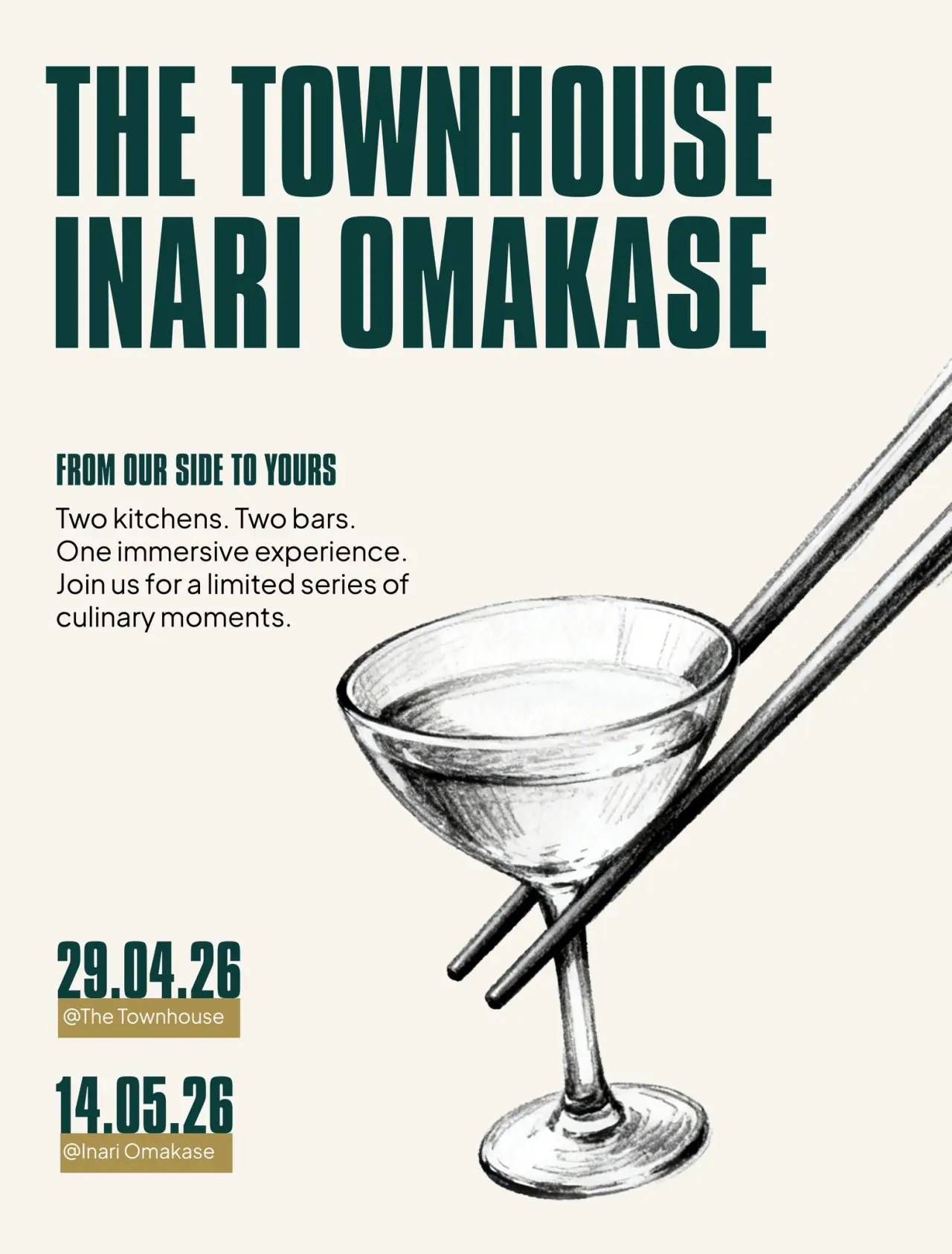 Inari Omakase ve The Townhouse, gastronomi dünyasında büyük bir etki yaratacak olan bu proje ile kendilerine özgü karakterlerini bir araya getiriyor. İlk gecede Inari Omakase'nin yenilikçi Japon mutfağı, The Townhouse’un zengin atmosferinde misafirlere sunulacak. İkinci gecede ise The Townhouse’un şık kokteylleri, Inari Omakase’nin zarif ortamında yer alacak. Bu eşsiz deneyim, yemek ile içeceklerin büyülü bir uyum içinde sunulmasını sağlarken, aynı zamanda iki farklı kültürü de harmanlıyor.