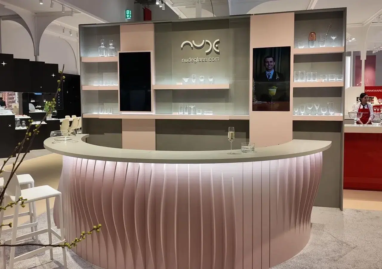 Ambiente, dünyadaki en prestijli tasarım ve yaşam tarzı fuarları arasında gösteriliyor. BU fuar, her yıl geniş bir katılımcı yelpazesine ev sahipliği yaparak ziyaretçilerine en yenilikçi tasarım örneklerini sunuyor. NUDE, bu yıl fuarda modern cam işçiliğini öne çıkaran ve işlevsellikle estetiği bir araya getiren yeni tasarımlarını sergiledi. Kadehler, ev aksesuarları ve servis ürünleri kategorilerindeki ürünleriyle NUDE, uluslararası ziyaretçilerin ilgisini çekmeyi başardı. Yenilikçi tasarımlar arasında özellikle dikkat çeken Bar/Giani Koleksiyonu, modern tasarımın gelenekselliği nasıl yansıttığını gösterdi.