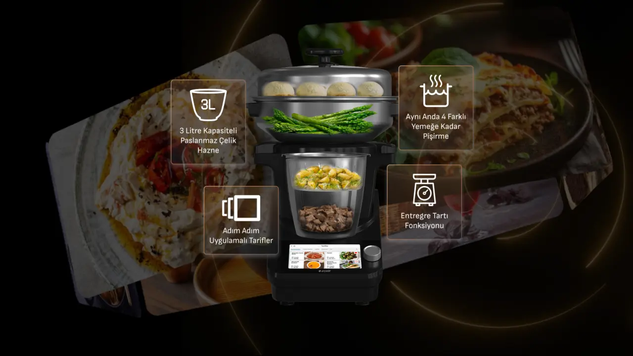 Arçelik'in ThermoGurme, mutfakta akıllı pişirme anlayışını pekiştiren bir cihaz olarak öne çıkıyor. Çok fonksiyonlu yapısı sayesinde hazırlıktan pişirmeye kadar tüm süreci entegre bir biçimde yönetiyor. Cihaz, 7 inç dokunmatik TFT ekranı kullanarak adım adım rehberlik sunmakta ve bünyesinde barındırdığı yüzlerce tarif ile her seviyedeki kullanıcıya hitap ediyor. Aynı zamanda, 30 otomatik programı ve yüksek hassasiyetli sıcaklık kontrolüyle büyük bir yemek çeşitliliği sunuyor.