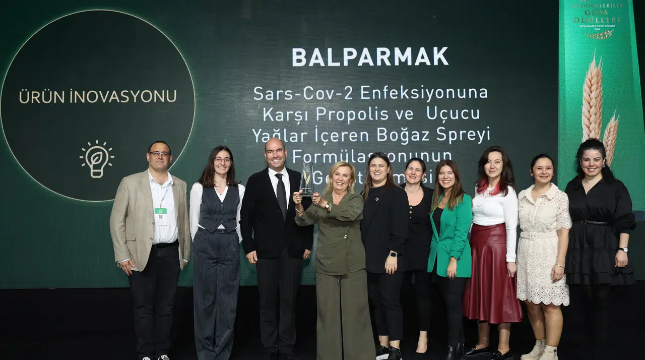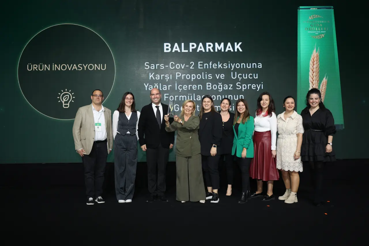 Zirve kapsamında, 13 farklı kategoride ödüller verildi ve Balparmak, Ürün İnovasyonu Kategorisi’nde Apitera Propolisli Yetişkin Sprey ile en yüksek ödülü kazandı. Bu boğaz spreyi, SARS-CoV-2 enfeksiyonuna karşı koruma amaçlı olarak propolis ve uçucu yağlar içermekte. Balparmak’ın bu ödüllü ürünü, markanın bilimsel araştırmalar ve inovasyon odaklı vizyonunu bir kez daha gözler önüne serdi.