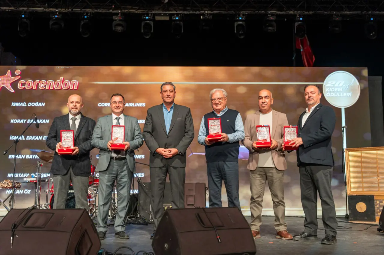 Etkinlik sırasında, Corendon’un kurumsal kültürü ve ekip ruhunun ön planda tutulduğu gözlemlendi. Çalışanların katkılarının vurgulandığı gecede, şirketin bugüne gelmesinde büyük rol oynayan personellere teşekkür edildi. Bu özel organizasyonda, uzun yıllar boyunca şirkette hizmet veren çalışanlar, yıllık hizmet sürelerine göre onurlandırıldı. 10 yılını dolduran 45 çalışan, 15 yıllık hizmeti olan 21 kişi ve 20 yılını tamamlayan 22 çalışan plaket ile ödüllendirildi. Bu durum, şirkete olan sadakat ve özverinin önemini bir kez daha gözler önüne serdi.