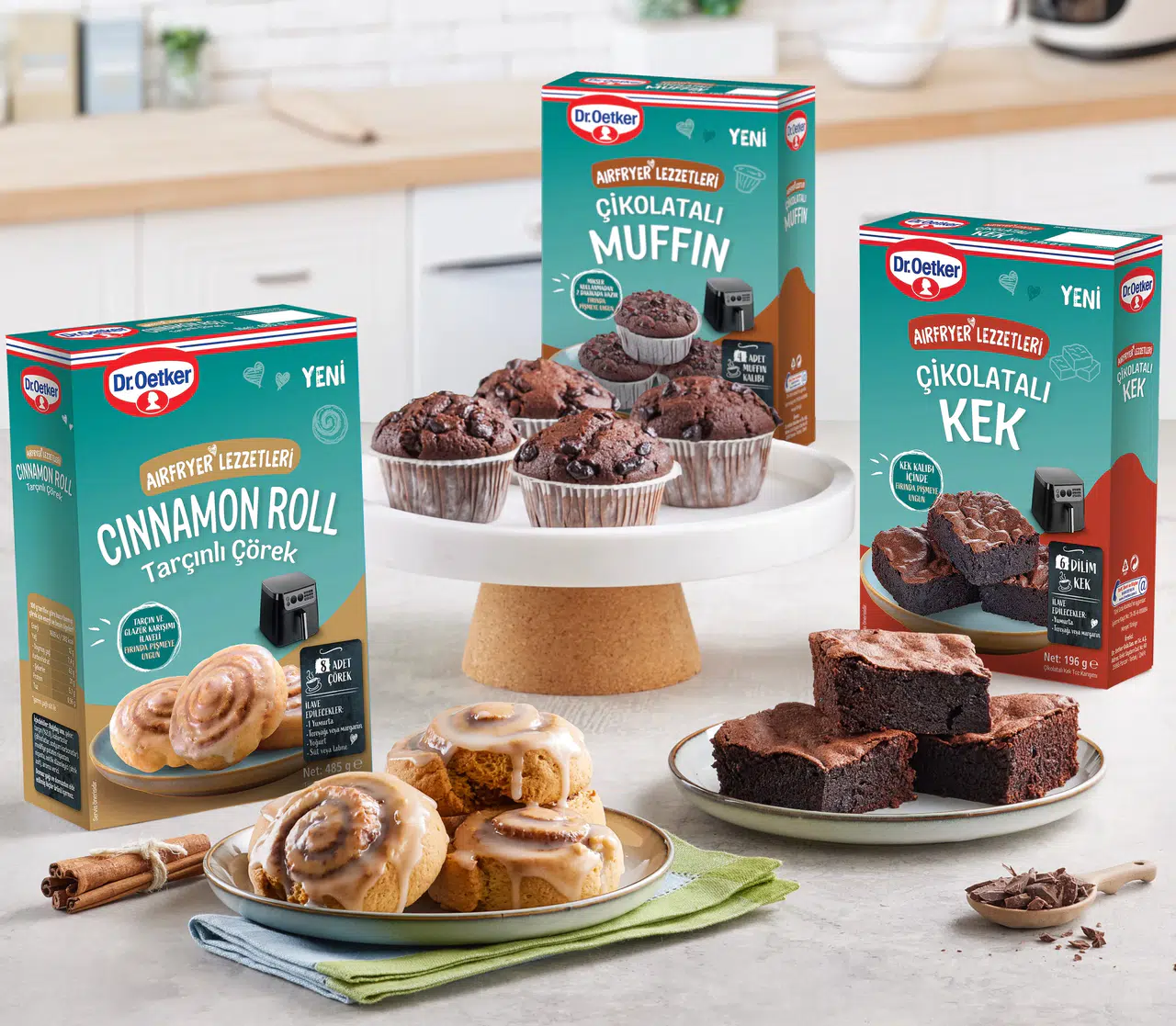 Dr. Oetker, mutfaklarda popüler hale gelen air fryer kullanımına yönelik özel bir ürün serisi geliştirdi. Bu yenilikçi ürünler, pratik tatlı hazırlama süreçlerini kolaylaştıracak bir dizi lezzeti içeriyor. "Airfryer Lezzetleri Serisi" adı altında sunulan bu yemekler, hem zaman tasarrufu sağlarken hem de zahmetsiz bir şekilde yapılan lezzetli tatlar sunuyor. Bu serideki ürünler arasında, tarçınlı çörekler, çikolatalı muffinler ve çikolatalı kek yer almakta.