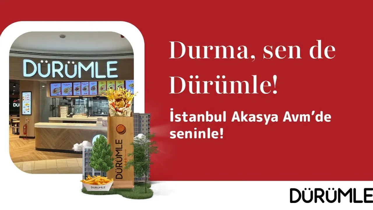 Benzersiz tatlarıyla dikkat çeken Dürümle, Akasya Alışveriş Merkezi’ndeki yeni şubesini açarak daha fazla müşteriye ulaşma fırsatı sağladı. Dürümle, çağdaş dürüm lezzetlerini hem pratik bir şekilde hem de her an tüketilebilecek bir formda sunmayı hedefliyor.
