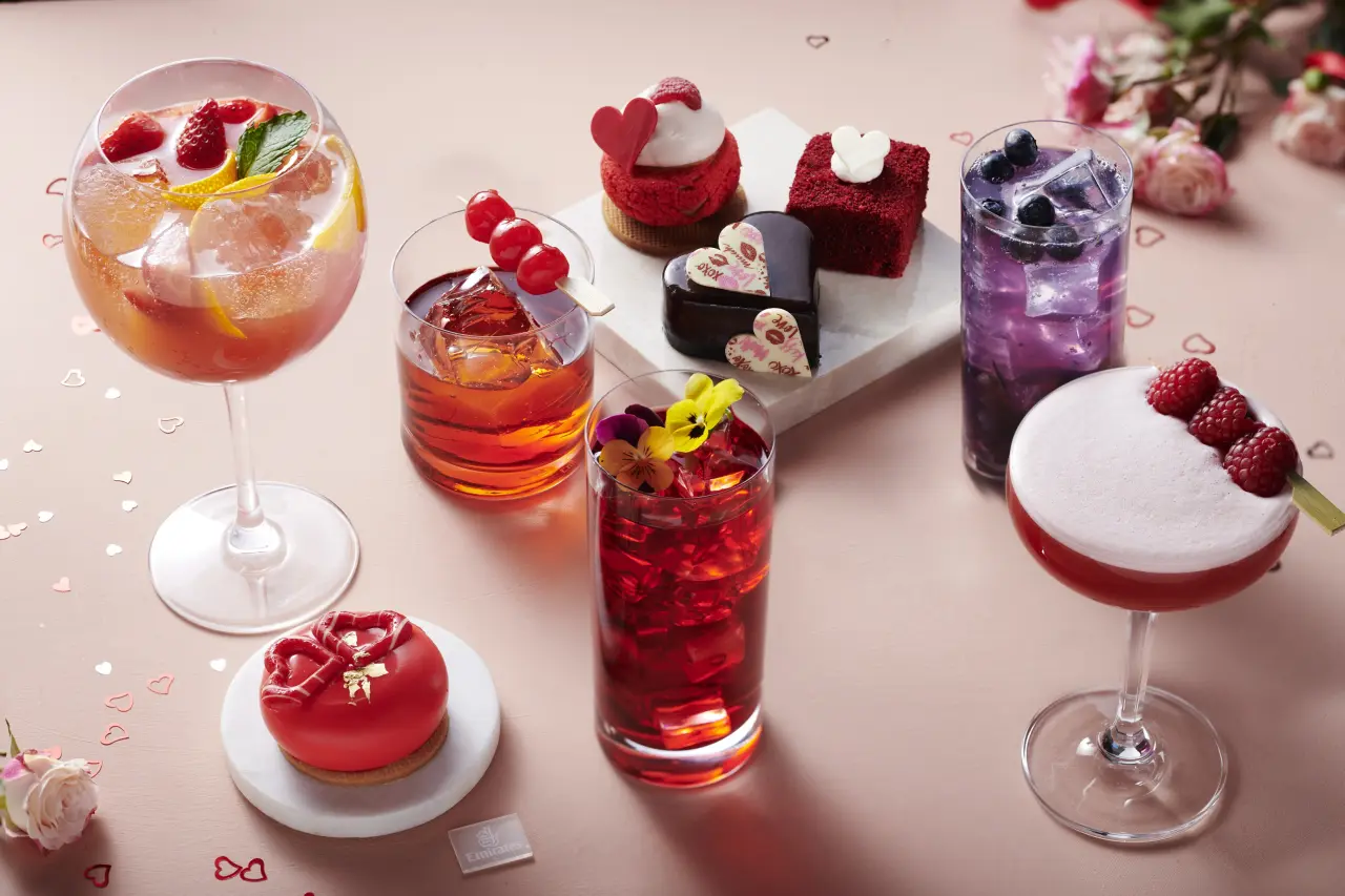 Dubai’deki Emirates lounge’larında 13-15 Şubat tarihleri arasında First Class yolcuları, açık büfe ve à la carte seçenekler sunan özel tatları tadabilecekler. Frambuazlı vanilyalı pasta, Antep fıstıklı çilekli pasta ve red velvet gibi dikkat çekici tatlılar, ziyafeti taçlandıracak. Buna ek olarak, tematiğe uygun “Love Potion” ve “Whispered Hearts” gibi kokteyller yolculara sunulacak. Bu eşsiz içecekler, marine edilmiş ıstakozlu milföy ve trüf kremalı kanepeler ile birlikte sunulacak.