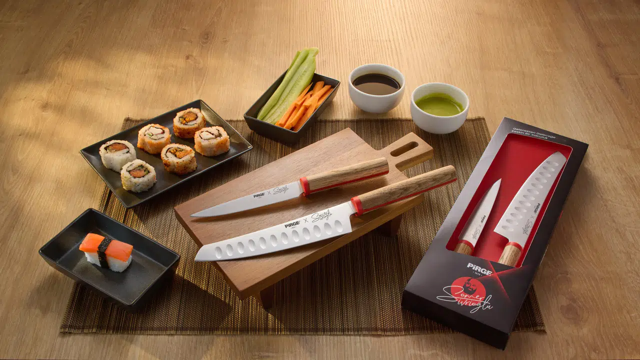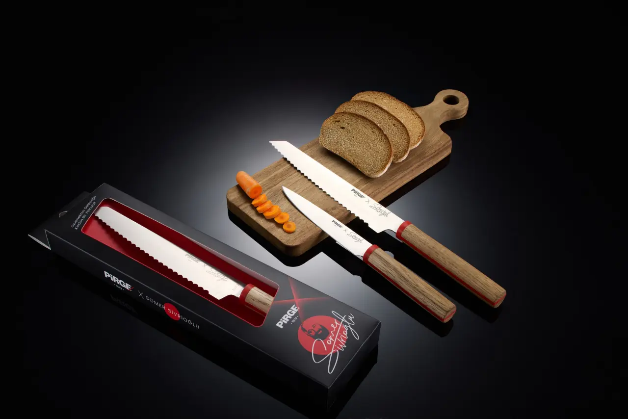 Profesyonel mutfakların ve ev kullanımlarının tüm kesici alet gereksinimlerini karşılayan Pirge, ünlü şef Somer Sivrioğlu ile birlikte özel bir bıçak serisi oluşturdu. “Gelenekten Geleceğe Keskin Bir Yolculuk” temasıyla tasarlanan Pirge x Somer Sivrioğlu Serisi; sebze, şef, ekmek ve santoku bıçakları ile mutfakta kendinizi bir şef gibi hissetmenizi sağlayacak.