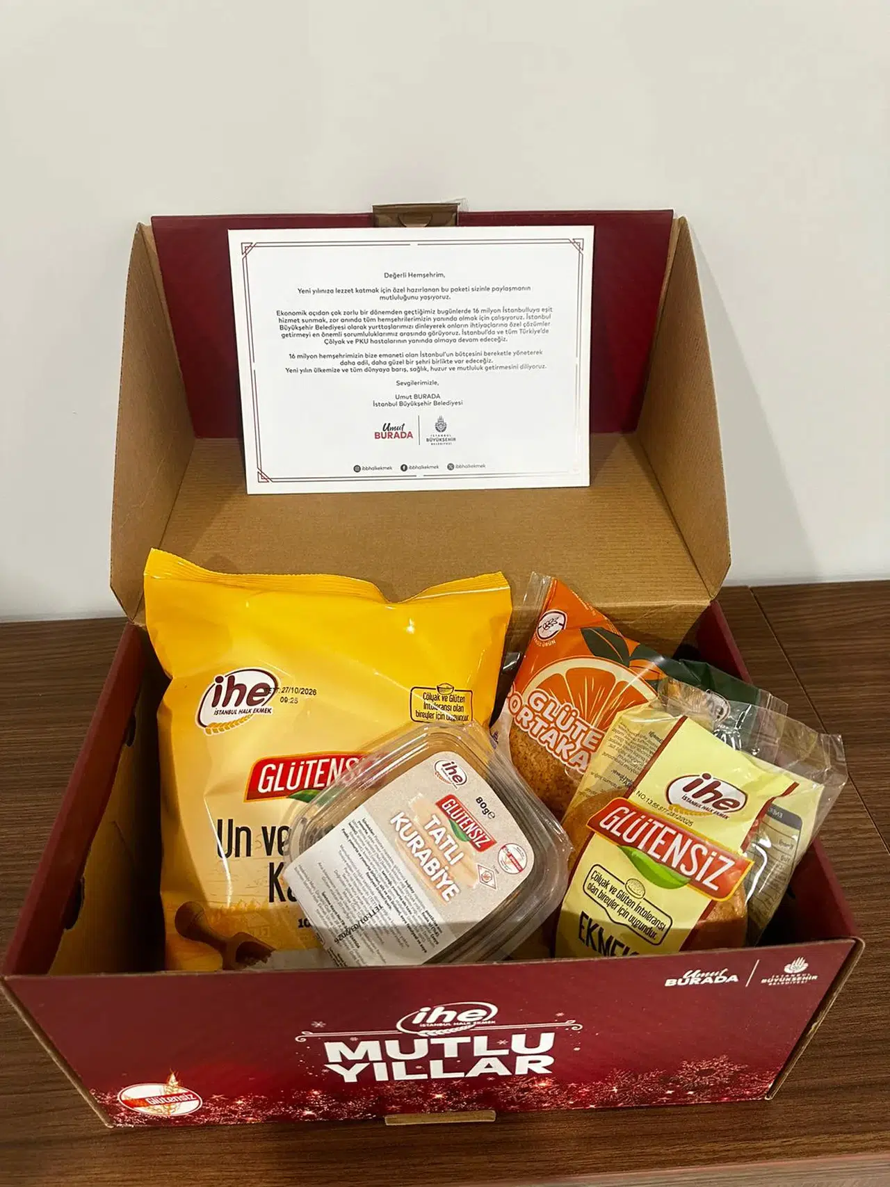 İstanbul Büyükşehir Belediyesi'ne bağlı İstanbul Halk Ekmek (İHE) A.Ş., hijyenik üretim koşullarında el değmeden kaliteli ürünler sunma hedefiyle çalışmalarını sürdürüyor. Günlük tüketim ürünlerinin yanı sıra çölyak hastaları ve fenilketonüri (PKU) hastaları için özel olarak glütensiz ekmek, un, kurabiye ve makarna üretimi yapıyor. Piyasa değeri yüksek olan bu ürünleri, hastalara daha uygun fiyatlarla ulaştırarak destek olmayı amaçlayan Halk Ekmek, dini bayramlar ve yeni yıl gibi özel günlerde hediye paketleri hazırlayarak ihtiyaç sahiplerine yardımcı oluyor. Yılda üç kez dağıtılan bu hediye kolileri içerisinde, 1 kg glütensiz un, 5 adet glütensiz roll ekmek, glütensiz tatlı kurabiye ve İHE’nin yeni ürünü olan glütensiz portakallı kek yer alıyor.