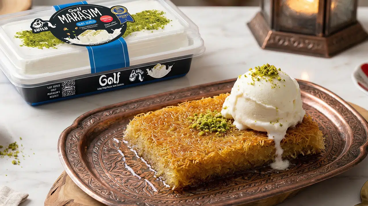 İftar Sofralarını Şenlendiren: %81 Sütlü Golf Maraş Dondurmalı Çıtır Kadayıf!