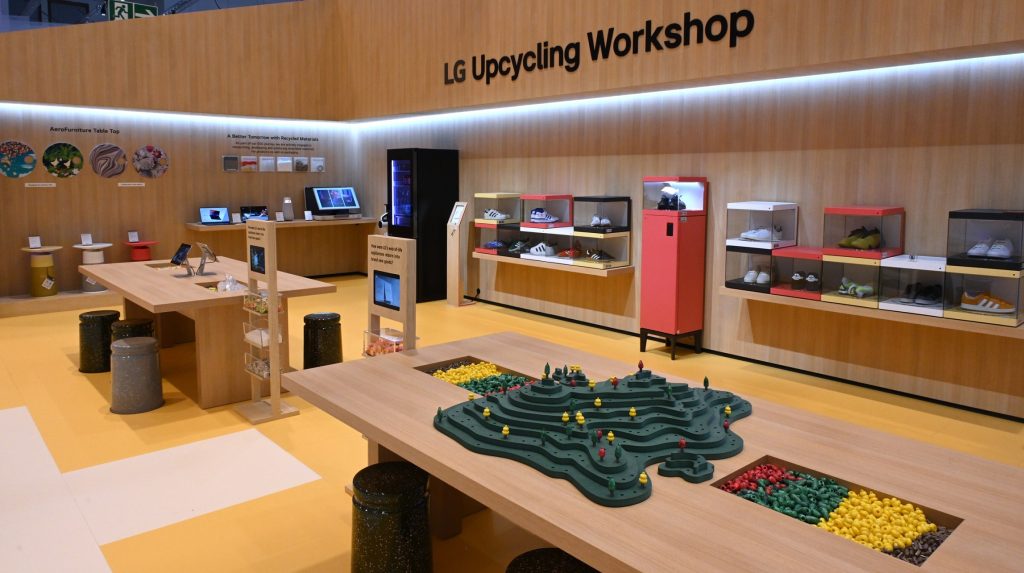 Upcycling Workshop Zone, LG PuriCareTM AeroFurniture hava temizleyici ve Styler™ ShoeCase ve ShoeCare çözümleri gibi şirketin geri dönüştürülmüş plastik kullanılarak üretilen bazı ev aletlerini öne çıkarıyor. Ayrıca ziyaretçiler, LG'nin geri dönüşüm girişimleri hakkında bilgi edinecekleri atölye çalışmalarına katılabilecek ve Chilseo Geri Dönüşüm Merkezi'nde atık plastiklerden elde edilen reçine paletlerin kullanımını konu alan 'plastik düğüm yarışması'na katılma şansına sahip olacaklar.