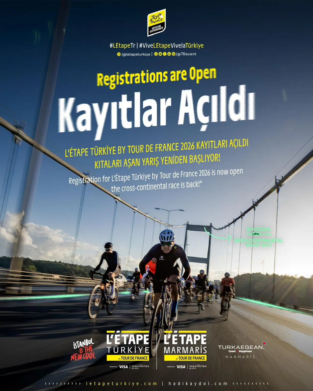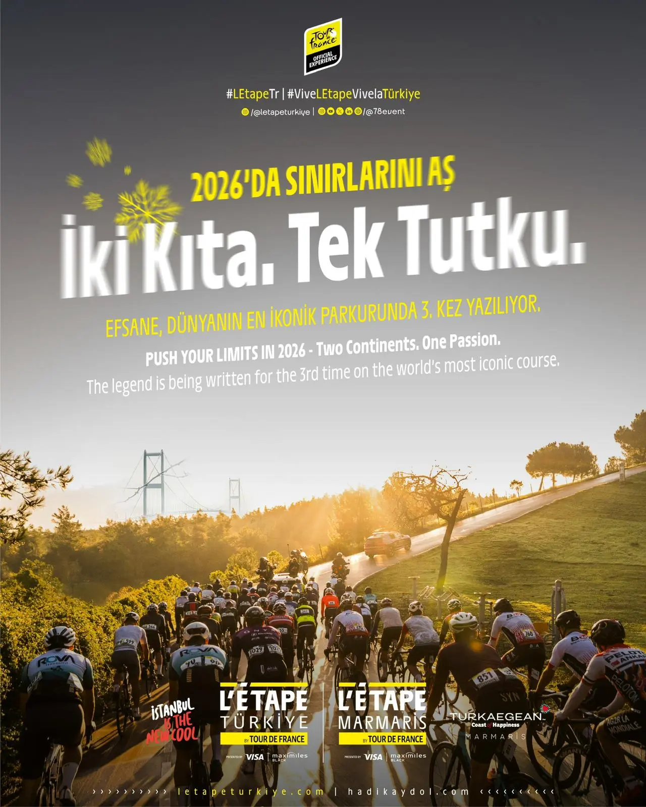 Bisiklet sporunun en prestijli etkinliklerinden biri olan Tour de France'ın amatör versiyonu L’Étape, 2026 sezonunda Türkiye’de yeniden düzenleniyor. Hem İstanbul’da hem de bu yıl ilk kez Muğla’da hayata geçirilecek organizasyonlar için kayıt işlemleri başlamış durumdadır. Katılımcılar, efsanevi "sarı mayo" ruhunu deneyimleyerek zorlu parkurlar eşliğinde tarihin en özel bisiklet deneyimlerinden birini yaşayacaklar.