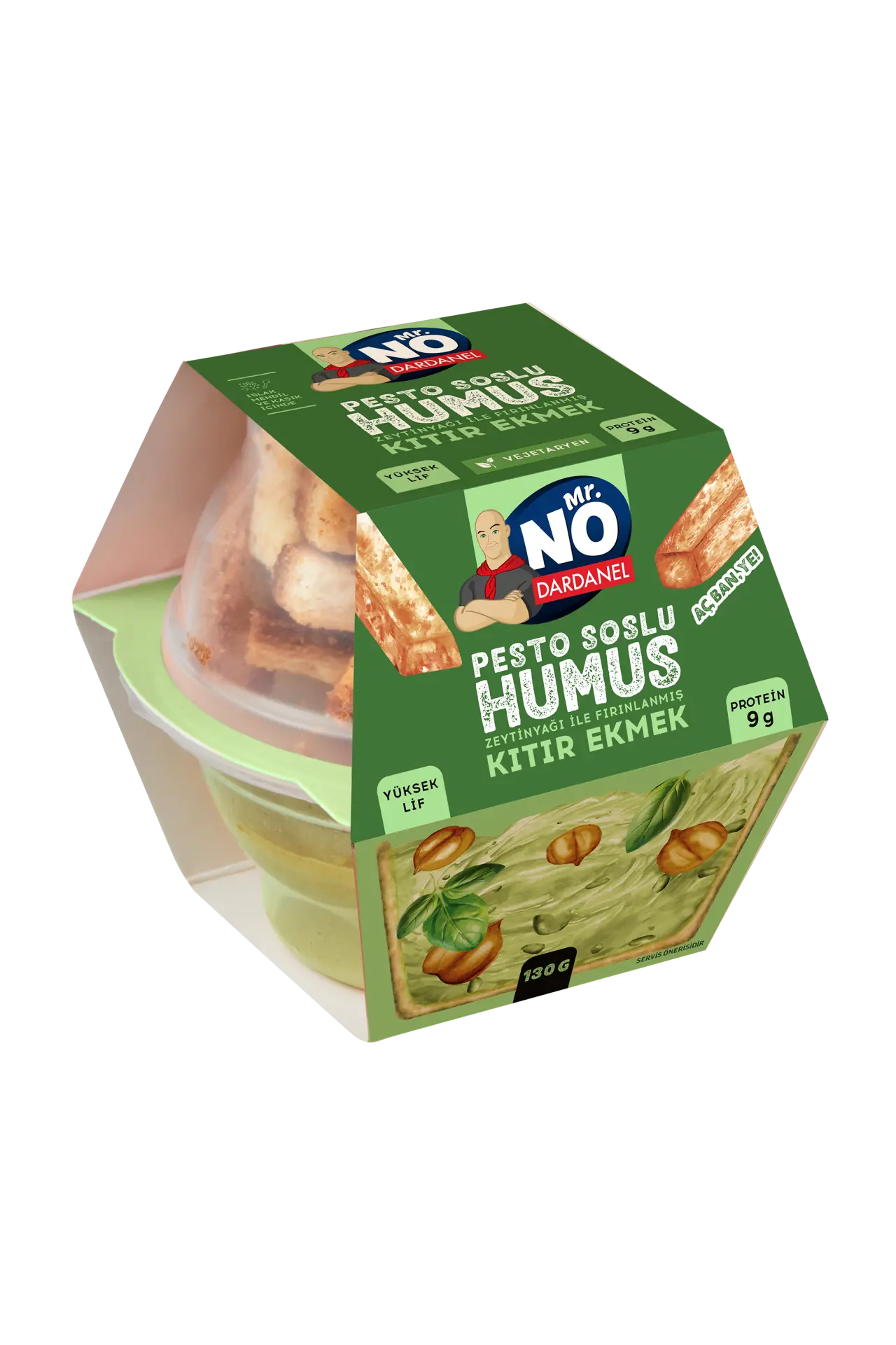 Bu global sağlıklı beslenme trendinden ilham alan Mr. NO markası, humusu modern bir şekilde yorumlayarak tüketicilere sunuyor. Zeytinyağı ile fırınlanmış kıtır ekmekle birlikte sunulan Mr. NO Humus serisi, pratik tüketim imkanı ile günlük yaşamda hızlı, sağlıklı ve lezzetli bir alternatif arayanlara hitap ediyor. Ürünler, yüksek protein ve lif içeriği sayesinde besin değerini artırarak sağlıklı ara öğün fırsatları sunuyor. Ayrıca, sunumunda kullanılan kaşık ve ıslak mendil, ürünü istediğiniz her an rahatça tüketmenizi sağlıyor.