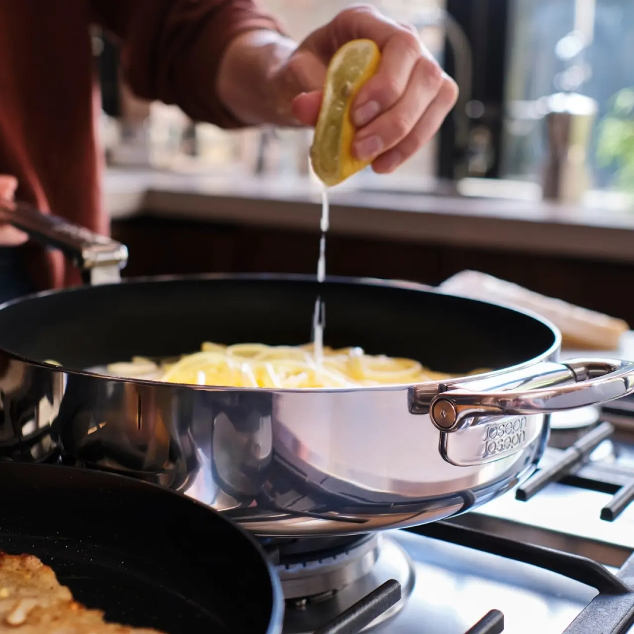 Joseph Joseph, tasarım odaklı ürünleriyle tanınan bir marka olup, Space Steel paslanmaz çelik serisi, yenilikçi tasarımı ve kaliteli mühendislik anlayışını bir araya getiriyor. Bu seri, mutfaktaki alanın en verimli şekilde kullanılmasına yönelik olarak geliştirilmiştir. Tavalardaki saplar, yeni SwingLock™ teknolojisi sayesinde tek hareketle katlanabiliyor. Patent başvurusu yapılan bu teknoloji, mutfakta %50'ye kadar yer tasarrufu sağlarken, kullanıcıların güvenliği için özel bir arıza emniyet mekanizması ile desteklenmiştir. Böylece, özellikle alan kısıtlı olan mutfaklarda bile profesyonel performans ve düzen sağlanmış oluyor.