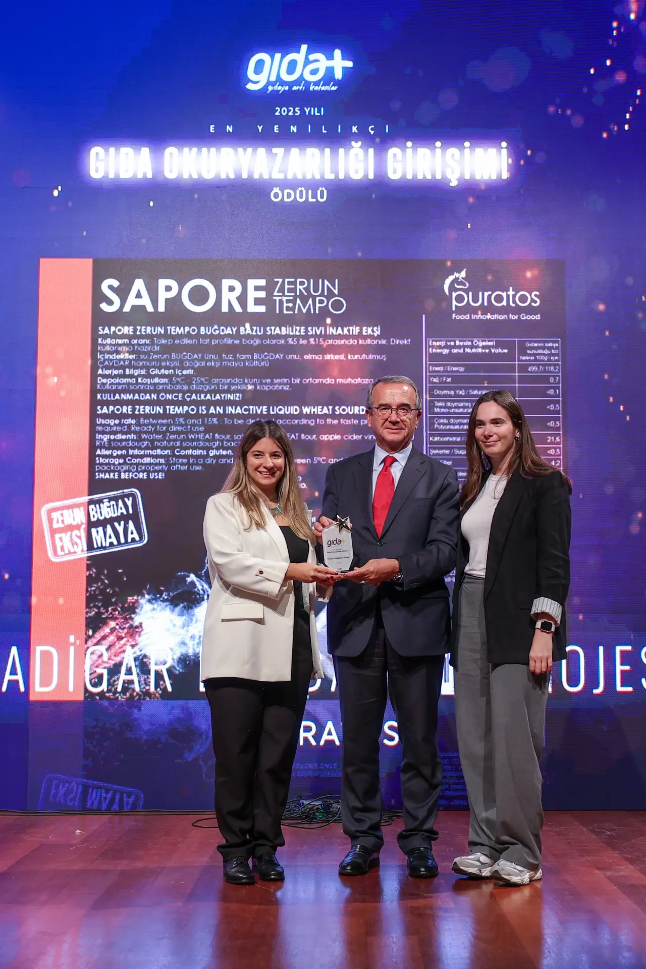 Puratos Türkiye, Sapore Zerun adlı inovasyon ürünüyle başlattığı Yadigâr Buğdaylar Projesi sayesinde, Gıda, İçecek ve Tarım Politikaları Merkezi (GİFT) tarafından 14 Ekim 2025’te Boğaziçi Üniversitesi’nde düzenlenen Gıda Plus Ödülleri’nde “En Yenilikçi Gıda Okuryazarlığı Girişimi” ödülüne layık görüldü. Gıda sektöründeki yenilikçi çözümleri ödüllendirme amacı taşıyan bu prestijli etkinlikte Yadigâr Buğdaylar Projesi, gıda okuryazarlığına yaptığı katkılar ve bilgi odaklı yaklaşımı sayesinde öne çıktı.
