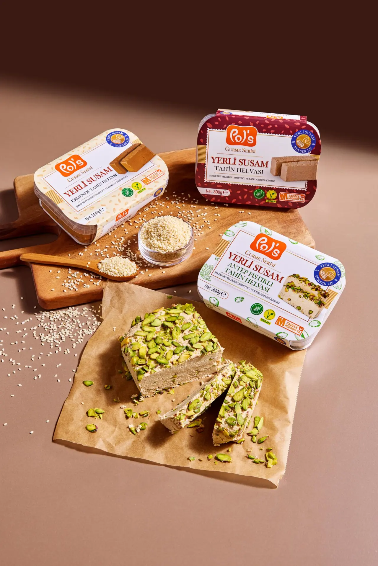 Pol's Gurme Serisi’nin temel bileşeni olan yerli susam, özellikle Migros ile yapılan iş birliği çerçevesinde hayata geçirilen bir projeyle yeniden canlandırılmıştır. Neredeyse yok olma durumuna gelmiş olan bu ata tohumunun yetiştirilmesi için, bölgedeki çiftçilere destek verilerek yerel üretim güçlendirilmekte ve sürdürülebilir tarım hedeflenmektedir. Anadolu'nun zengin topraklarıyla beslenen susam, doğal tarım yöntemleriyle yetiştirilmiştir.