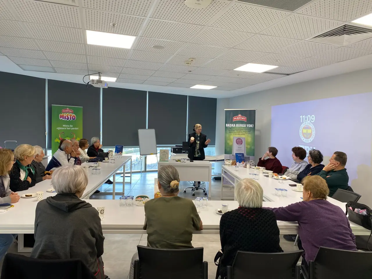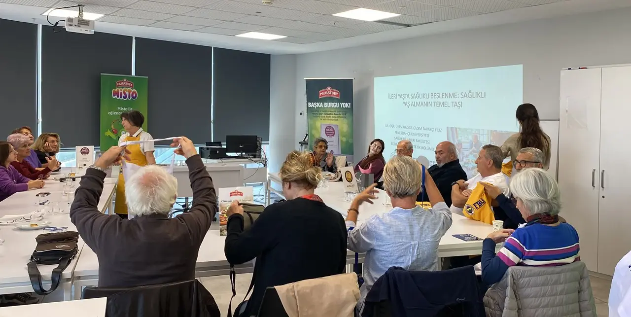 Fenerbahçe Üniversitesi Sağlık Bilimleri Fakültesi’nin Beslenme ve Diyetetik Bölümü tarafından yürütülen atölyelerde, yaşlı bireylerin doğru beslenme alışkanlıkları kazanmalarına yardımcı olacak konular işlenmektedir. Eğitimlerde, temel beslenme ilkeleri, sağlıklı menü planlama gibi konular uygulamalı örneklerle aktarılmaktadır. Ayrıca, katılımcılar seminer sonunda verilen kısa anketlerle beslenme bilgilerini değerlendirmekte ve eğitim öncesi ile sonrası pratiklerini karşılaştırma fırsatı bulmaktadır. Eğitim sonrasında ise, katılımcılar Muratbey ürünleriyle hazırlanan sağlıklı tarifleri deneyimleme şansına sahip olmaktadırlar.