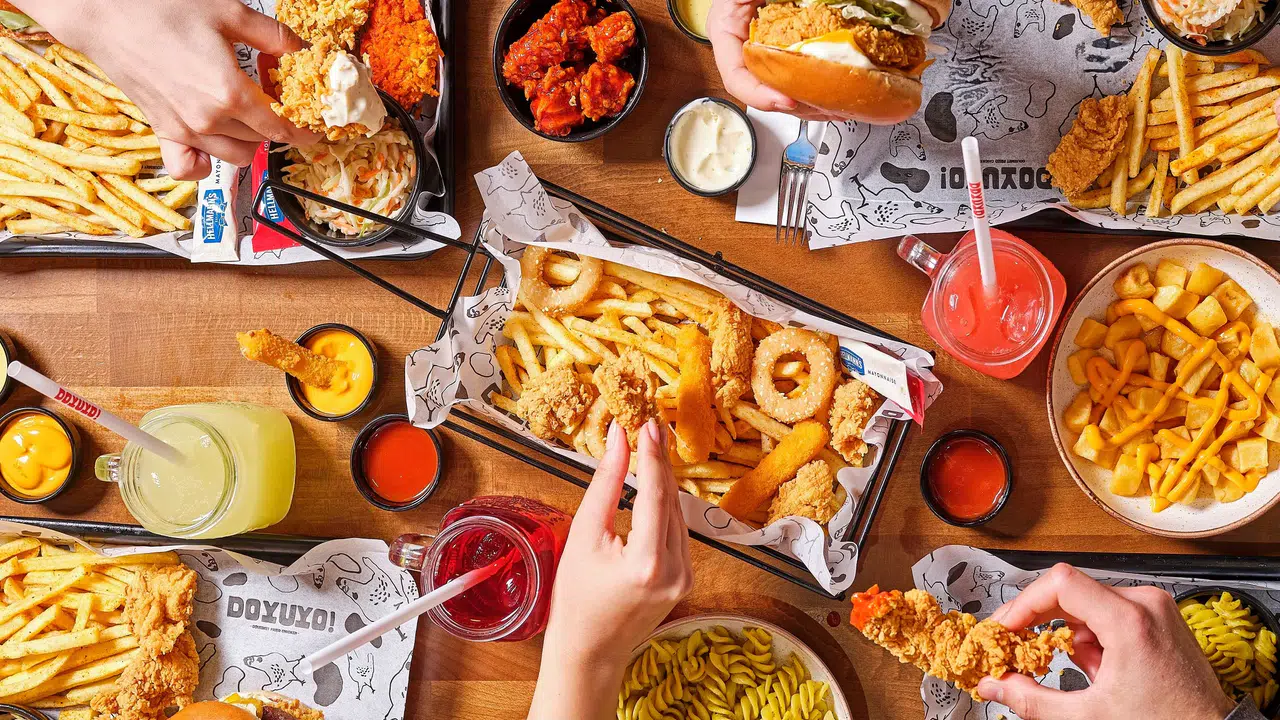 Paylaşım odaklı bir deneyim sunan Twin Box, özellikle gruplar için uygun bir seçenek. İki adet Tenders Royale Sandviç, dört adet Chickers ve soslu soğan halkaları gibi lezzetlerle zenginleştirilen bu menü, 1 litre içecek ile birlikte sunuluyor. Paylaşmak amacıyla hazırlanan bu menü, kalabalık arkadaş buluşmalarında, sıcak bir atmosfer yaratmayı sağlıyor. Doyuyo’nun ikonik lezzetleri, cömert porsiyonları ile bir araya gelerek unutulmaz bir deneyim sunuyor.