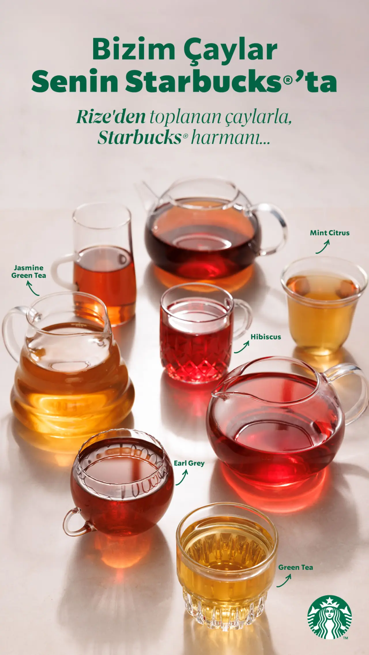 Kahve dünyasının önde gelen markalarından biri olan Starbucks, çay tutkunlarına özel olarak geliştirdiği yeni sıcak çay serisiyle dikkatleri üzerine çekiyor. Türkiye'nin yeşil kalbi Rize'nin çay bahçelerinden elde edilen yapraklar kullanılarak yapılan bu lezzetler, ferahlatıcı meyve çayları ile bir araya gelerek beş farklı çay çeşidi sunuyor. Her biri, çay severlerin damak zevkine hitap eden farklı aromalar barındırıyor.