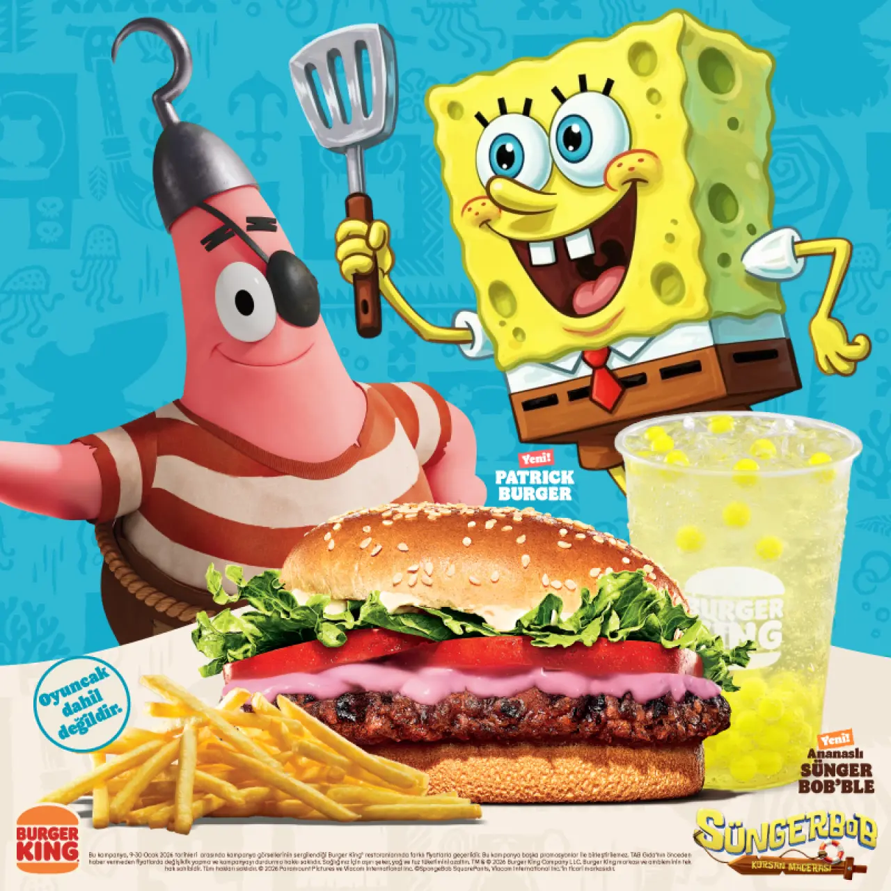 Burger King, yeni filmiyle birlikte Sünger Bob'un korsan temalı macera ruhunu, restoranlarında sunmaya başladı. Bu menü, restoranların ikonik alevde ızgara lezzetleri ile eğlenceli bir tema ve yaratıcı bir sunum deneyiminde buluşuyor. Sünger Bob Menüsü, hem çocuklar hem de yetişkinler için keyifli anlar sunmayı amaçlıyor. Bu yeni lezzet kombinasyonu, sadece yemek deneyimi değil, aynı zamanda bir eğlence unsuru şeklinde de hazırlanmış. Her yaştan takipçisi, bu tema aracılığıyla hem eğlendirici hem de lezzetli bir menüyle karşılaşıyor.