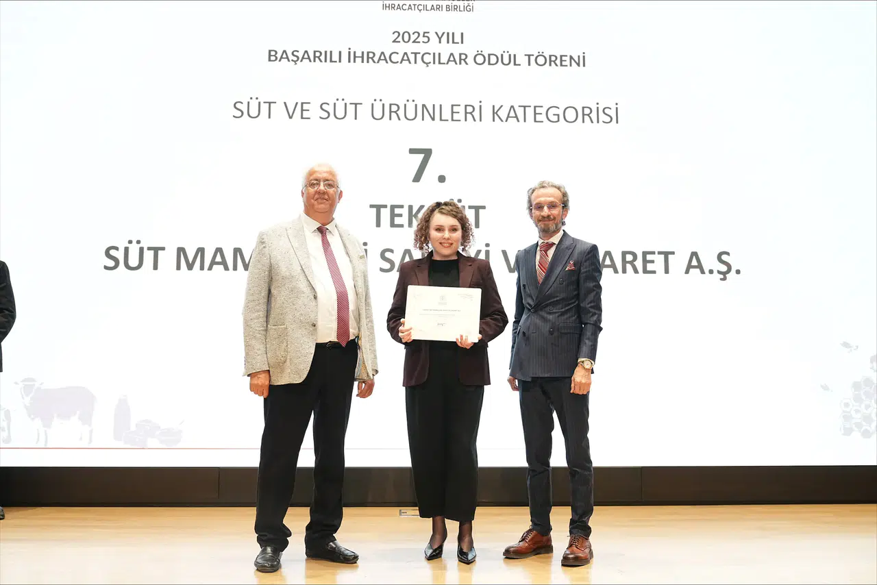 Türkiye’nin en büyük süt ve süt ürünleri şirketlerinden biri olan Teksüt, İstanbul Su Ürünleri ve Hayvansal Mamuller İhracatçıları Birliği’nin (İSHİB) 2025 yılı ihracat verilerine göre, süt ve süt ürünleri alanında faaliyet gösteren üye şirketler arasında yedinci sıraya yerleşti. Başarılı İhracatçılar 2025 Ödül Töreni’nde Teksüt adına bu ödülü, İhracat Uzmanı Deniz Yavuz Balcan aldı.