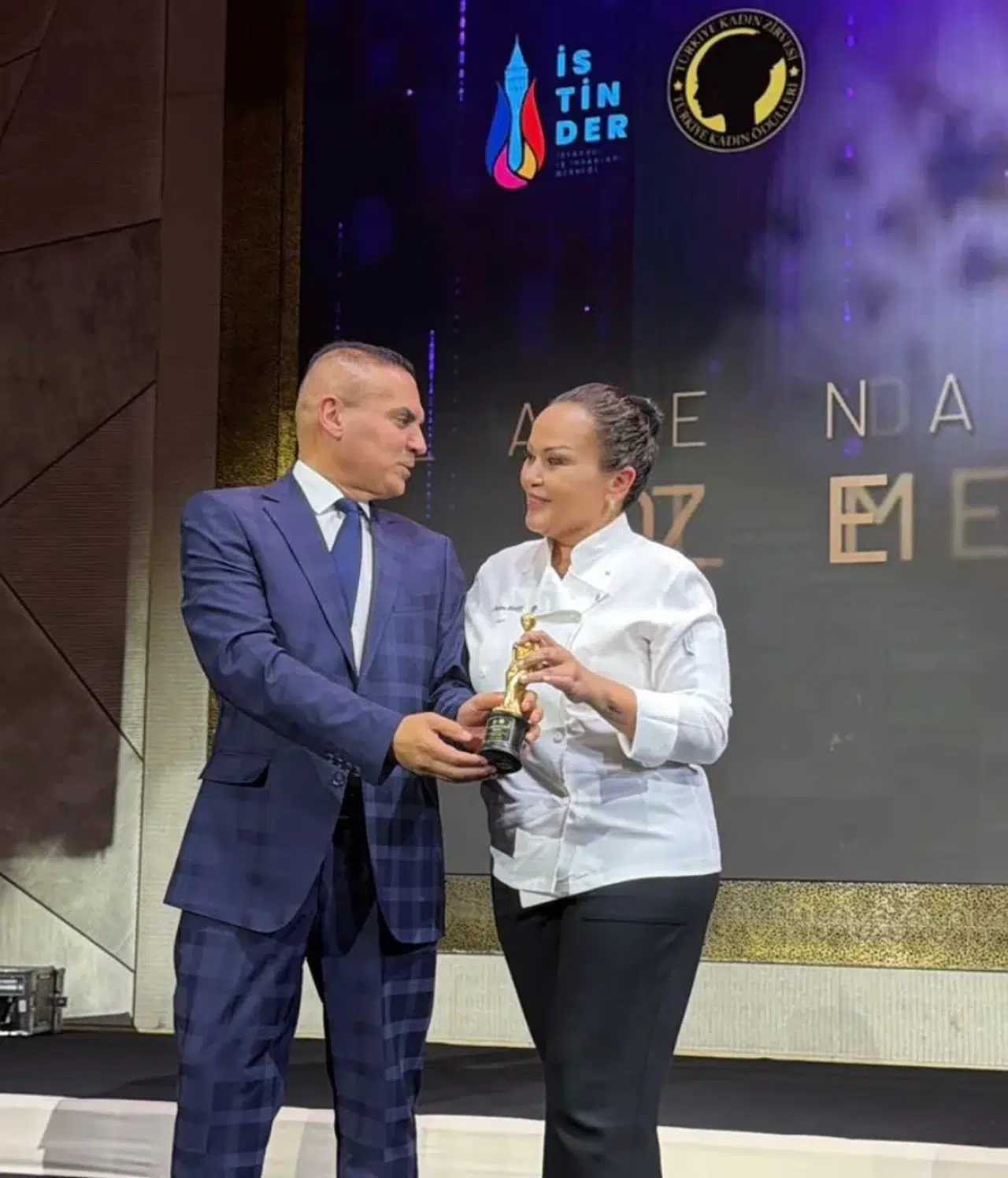 Ödülünü almak üzere sahneye çıktığında, Özlem Mekik’in duygusal anları dikkat çekti. Ödülünü organizasyonun kurucusu Nedim Delibaş’tan alan Mekik, duygularını açıkladığı konuşmasıyla etkinliğe adeta damga vurdu. “Bu ödül sadece benim değil; üretmekten vazgeçmeyen, hayallerinin peşinden cesaretle yürüyen tüm kadınların…” diyerek tüm kadınlara ilham veren bir mesaj iletti. Bu anlamlı ifadeleri, salonda uzun süre alkışlarla karşılandı ve gecenin en unutulmaz anlarını bir araya getirdi. Özlem Mekik, yalnızca bir şef değil, aynı zamanda cesur bir lider olarak da öne çıktı.