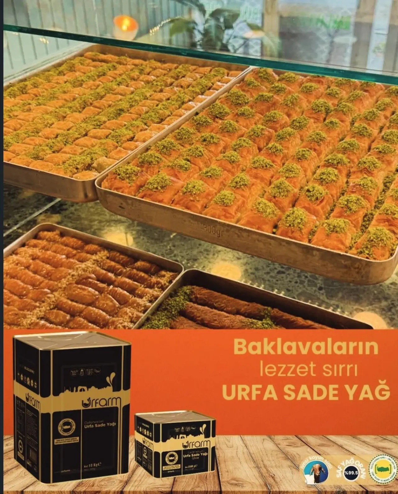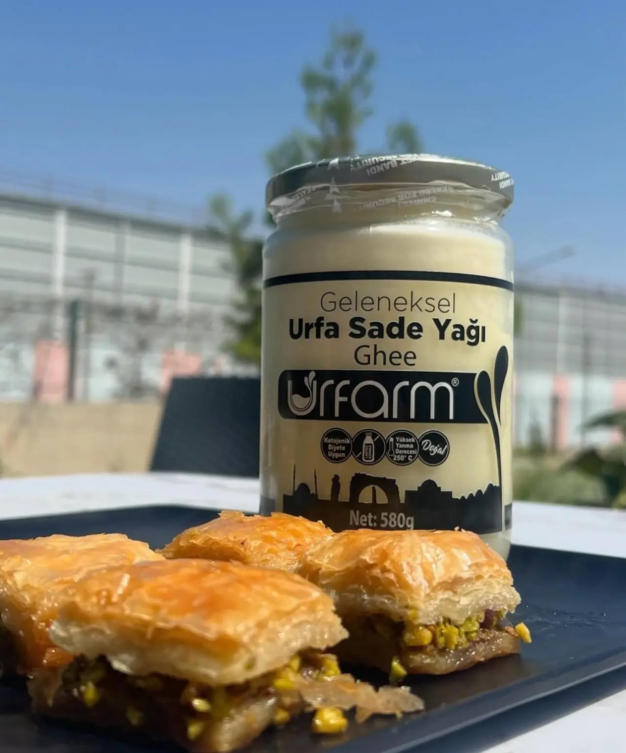 Urfarm denildiğinde öne çıkan ürünlerin başında, Urfa Sade Yağı geliyor. Yalnızca ivesi koyunlarının sütünden elde edilen bu özel ürün, %99’a varan saflık oranıyla dikkat çekiyor.