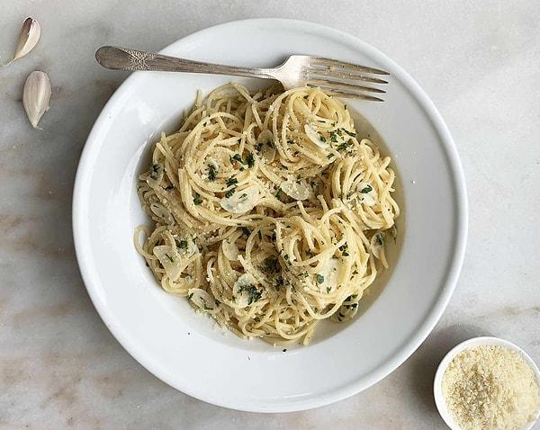 6. Hazırladığınız sarımsaklı sosu makarnaların üzerine dökün ve iyice karıştırın. Makarnaların her tarafının güzelce sosla kaplanmasını sağlayın.