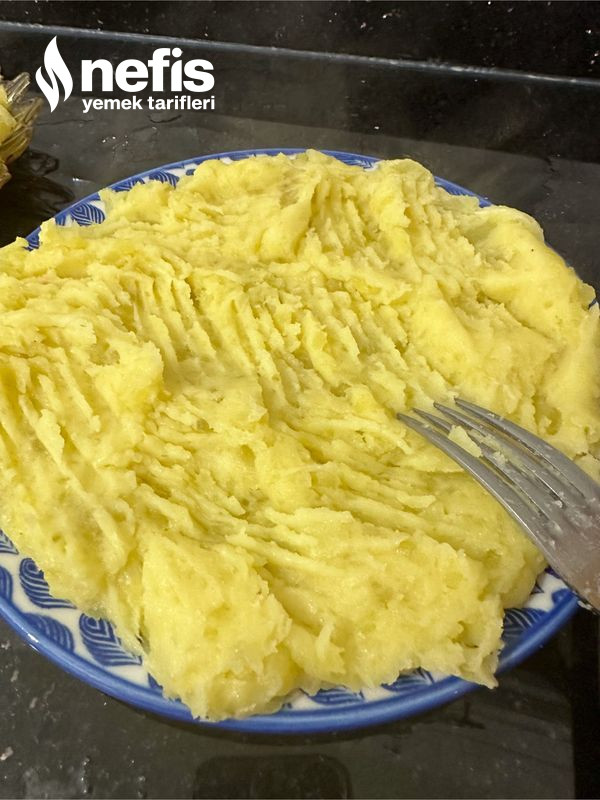 - Patates pişince ilk tereyağı, tuz ve kaşar ile karıştırıp eziyoruz tabağa yayıyoruz.