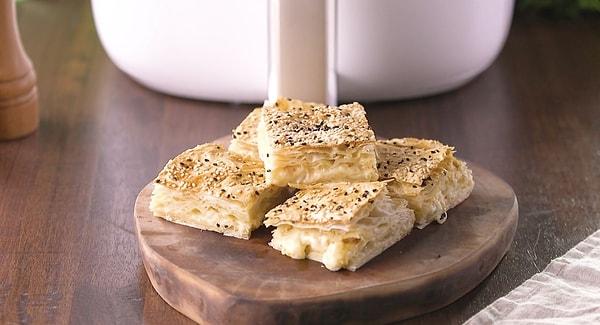 6. Böreğin üzerine sos sürün. Susam ve çörek otu serpin. Airfryer'da 170 derecede 20 dakika kontrollü pişirin.