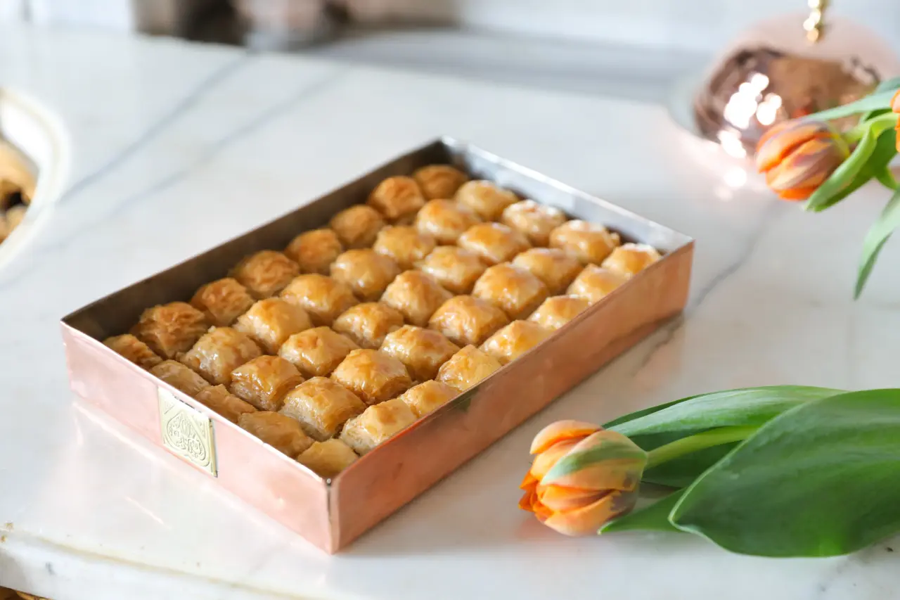 Geleneksel tatların başında gelen Fıstıklı Baklava, bol Antep fıstığı içeren harcı ve kat kat çıtır yapısıyla dikkat çekiyor. Saray’a özel olarak üretilen bu tatlı, şık bir bakır tepsi içerisinde sunularak, sunum aşamasında da estetik bir görünüm elde ediyor. Bu baklava, hem özel günler için mükemmel bir hediye alternatifi oluştururken, aynı zamanda iftar sofralarını zenginleştiren bir lezzet olarak öne çıkıyor. Antep fıstığının eşsiz lezzeti, bu geleneksel tatlıyı daha da özel kılıyor.