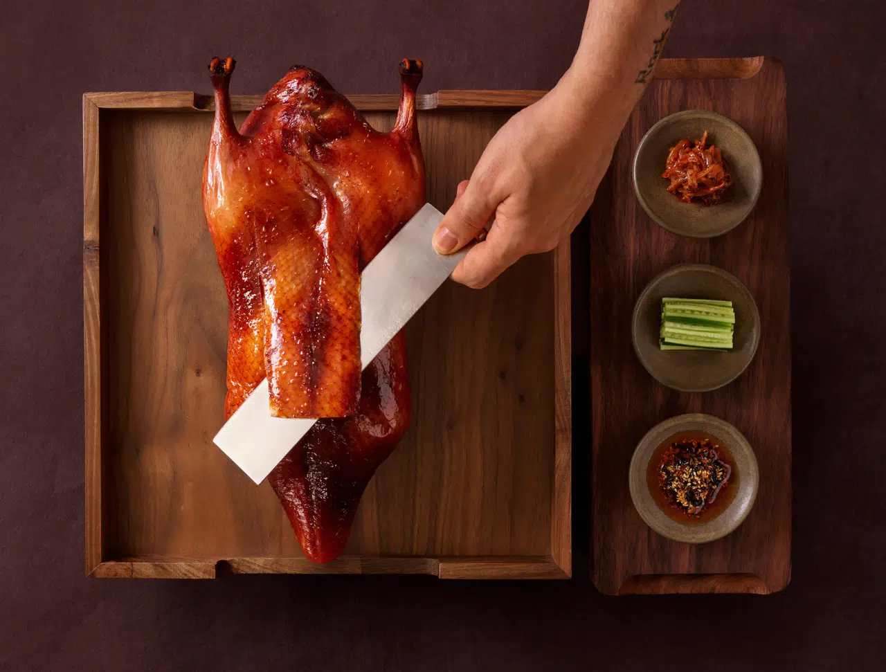 Ördek Tandır hazırlanırken, bütün ördek 72 saatlik bir marinasyon sürecinden geçiriliyor. Bu süreç, etin yoğun aromalarla buluşmasını sağlarken, sonrasında geleneksel tandır tekniği ile pişiriliyor. Bu pişirme yöntemi, ördeğe dış tarafında derin ve isli bir aroma kazandırarak, içinin sulu kalmasına yardımcı oluyor. Tandoor tekniği, yemeğin lezzet profiline katmanlar eklerken, tabak için de özgün bir kimlik kazandırıyor.
