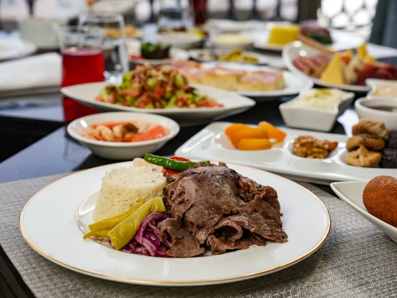 İftar menüsü, bolluk ve bereket temasıyla hazırlandı. İlk olarak, çeşitli serpme iftariyelikler, göz alıcı zeytinyağlılar, taze salatalar ve çorba ile misafirlere sunuluyor. Ardından, fırında özenle hazırlanmış ara sıcaklar, sofralarını daha zengin hale getiriyor. Ana yemeklerde ise geleneksel Türk mutfağının lezzetleri ön planda. Kesme döner, tavuk sarma, hünkar beğendi ve kuzu tandır gibi özel lezzetlerin yanı sıra, Ramazan’a özgü şık tatlılar, akşam yemeğinin finalini tatlandırıyor. Böylece, konuklar unutulmaz bir gastronomik deneyim yaşıyor.
