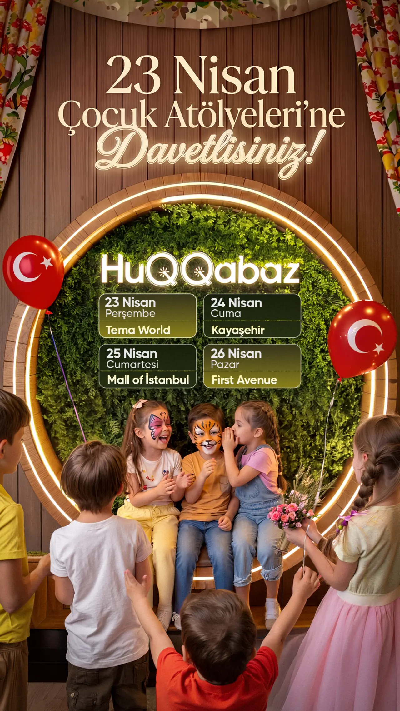 HuQQabaz, Cedgo Çocuk Atölyesi ile ortaklaşa düzenlediği HuQQabaz 23 Nisan Çocuk Atölyeleri aracılığıyla çocukların gelişimini destekleyici yaratıcı öğrenme ortamları sunmayı hedefliyor. Bu etkinlikler, ailelerin de çocuklarıyla kaliteli zaman geçirebilecekleri özel fırsatlar sağlayarak bir araya gelmelerini sağlıyor.