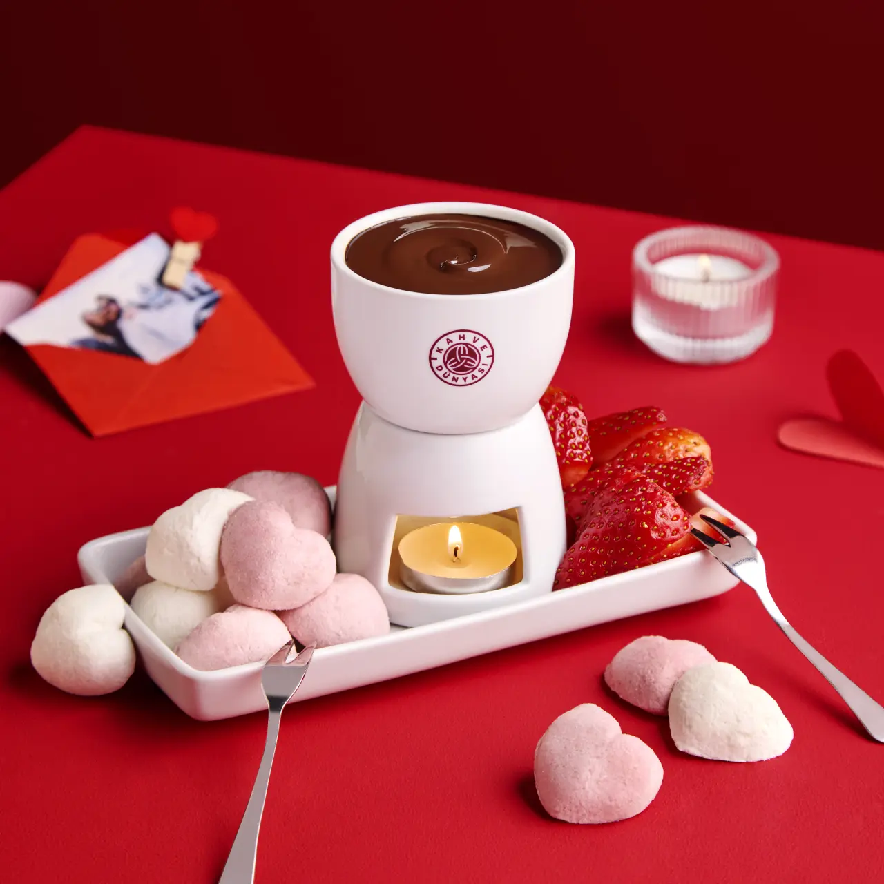 Sevgililer Günü’nde daha samimi ve sıcak anlar yaşamak isteyenler için Kahve Dünyası’nın sunduğu fondü servisi oldukça popüler. Gerçek Altınmarka çikolatasından elde edilen akışkan çikolata, kalp biçimindeki marshmallowlar ve taptaze meyvelerle buluşarak eşsiz bir tat deneyimi oluşturuyor. Bu sunum, romantik akşam yemekleri için vazgeçilmez bir seçenek haline geliyor. Sevgililerin birlikte keyif alabileceği bu tatlı deneyim, günün anlamını daha da derinleştiriyor. Kahve Dünyası’nın sunduğu bu özel fondü, çiftlere hem görsel hem de lezzet açısından unutulmaz anlar yaşatıyor.