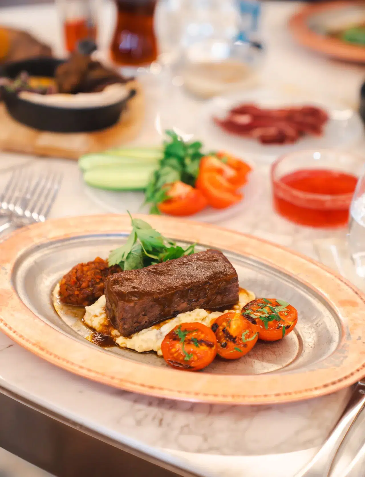 Şeflerin özenle hazırladığı paylaşıma uygun başlangıçlar arasında birçok lezzet mevcut. Patlıcan atom, nar ekşili bulgur ve Yedikule marulu ile yapılan çiğ köfte yorumu, zeytinyağlı ıspanak kökü ve istiridye mantarı gibi seçenekler, damaklarda unutulmaz bir tat bırakıyor. Ayrıca, muhammara ve Tarsus humusu da menünün öne çıkan lezzetleri arasında. Misafirler, bu başlangıçlarla birlikte Ramazan ayının ruhunu ve paylaşmanın sevincini doyasıya yaşıyor.