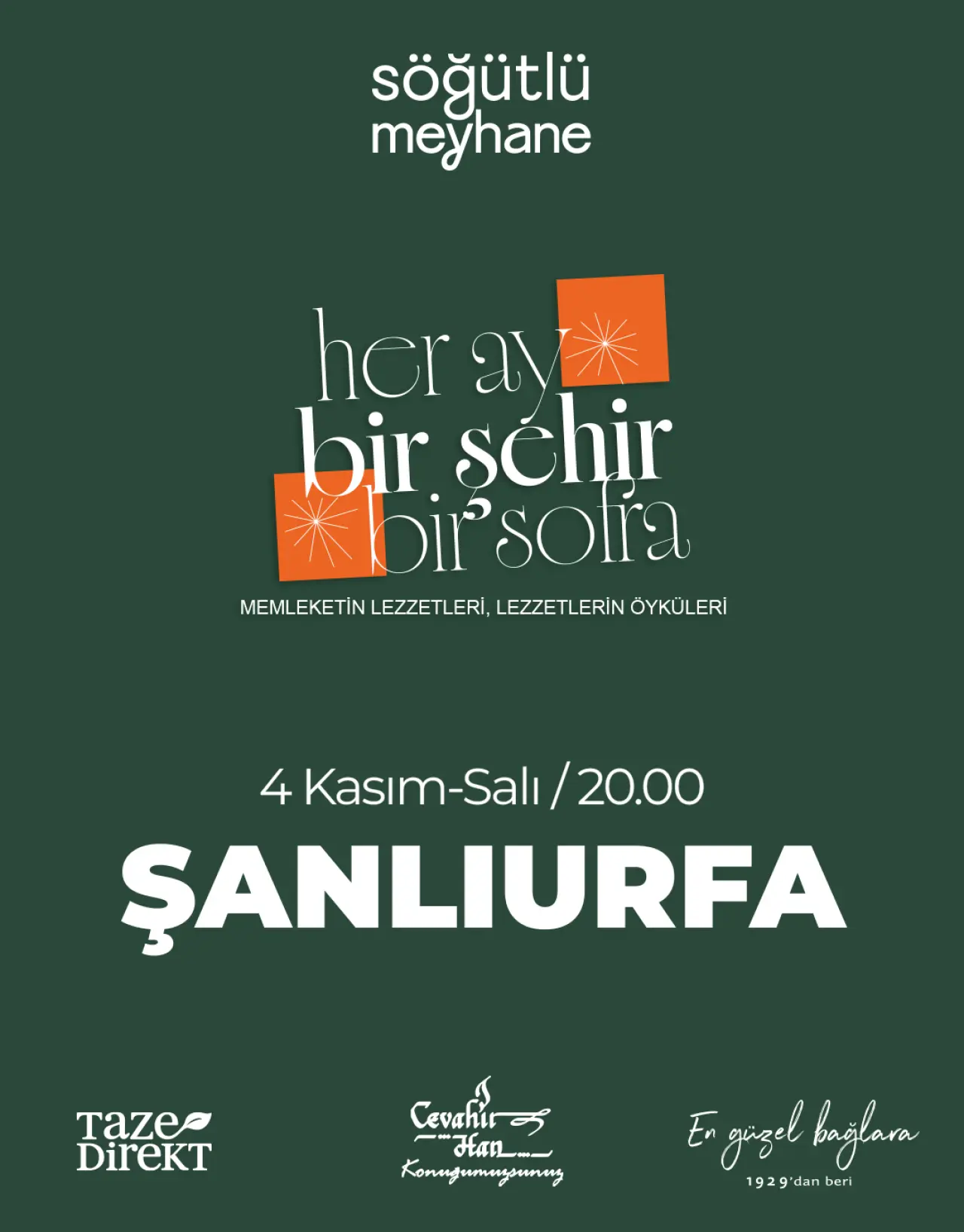 Şanlıurfa’nın zengin yemek kültürü, İstanbul'daki Terminal Kadıköy Söğütlü Lokanta’da gerçekleştirilmesi planlanan özel bir etkinlikle bir kez daha gün yüzüne çıkıyor. Bu anlamlı gecede konuklar, hem Şanlıurfa mutfağının eşsiz lezzetlerini tadacak hem de şehrin tarihine dair bilgi ve hikayelere tanıklık edecek.