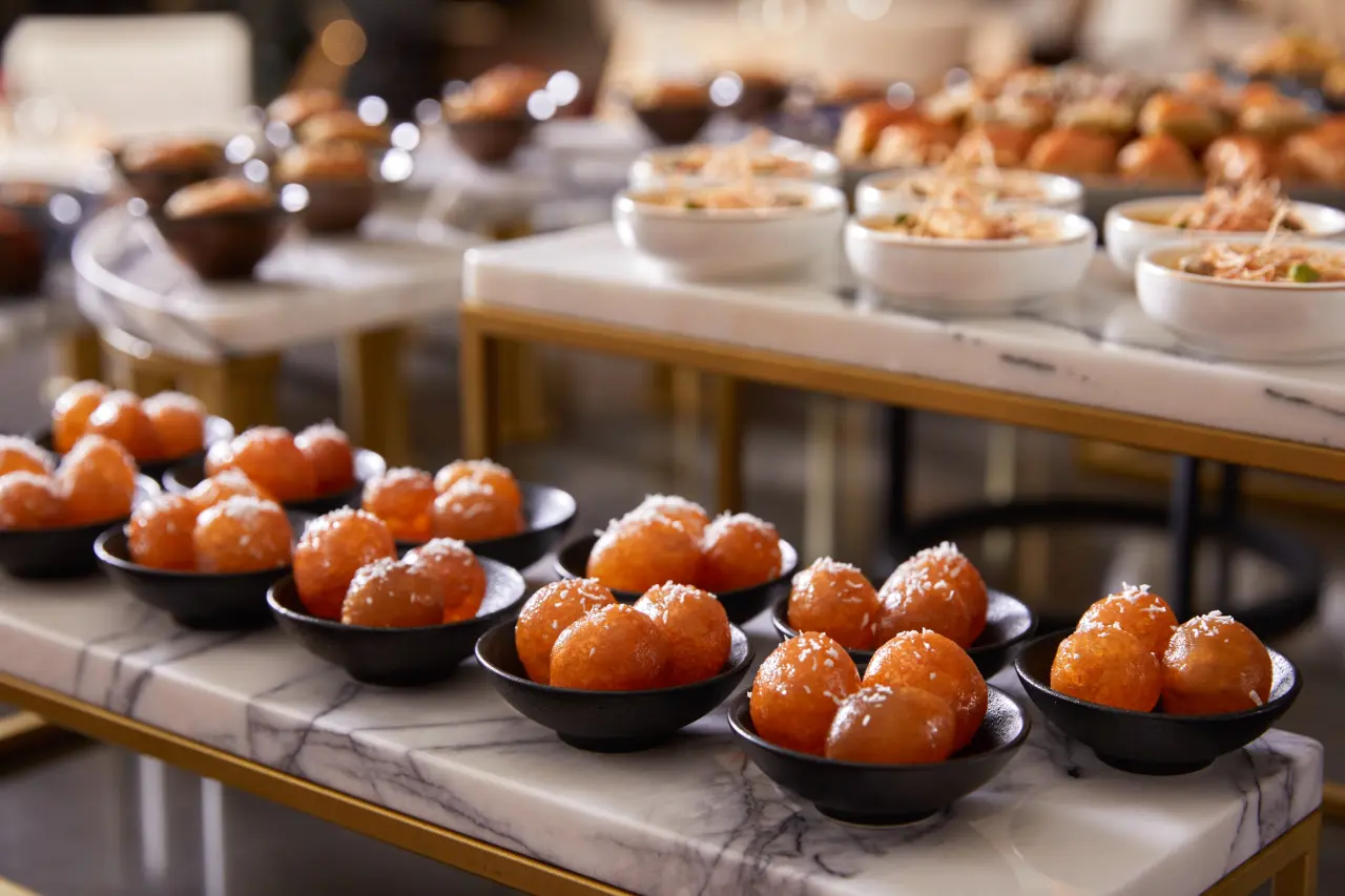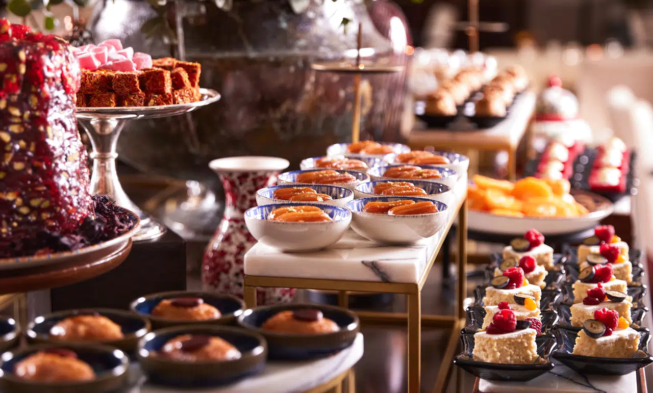 Tarihî Yolcu Salonu'nun etkileyici atmosferinde, iftar büfesinde sunulan iftariyelikler ve soğuk meze çeşitleri sizleri karşılıyor. Ayrıca, çeşit çeşit çorba, sıcak başlangıçlar ve ana yemek seçenekleri de menüde yer almakta. Geleneksel Türk tatlıları, özellikle baklava gibi seçenekler, The Peninsula'nın deneyimli pastane şefleri tarafından zarif bir şekilde sunuluyor. Bu tatlılar, hem göze hem de damak tadına hitap ederek misafirleri mest ediyor.