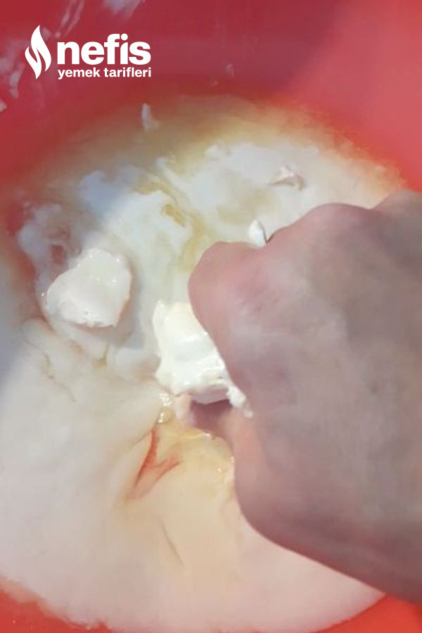 - Öncelikle bir karıştırma kabına yarım dereotu,yağımızı ,yoğurt, limon, tuz, yumurta akını ekleyip güzelce yoğuralım.