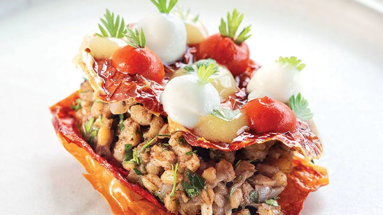 • Limon sıkın ve suyunu verinceye kadar pişip demlendikten sonra taze baharatları ekleyin. Kapya biberleri közleyip soyun.