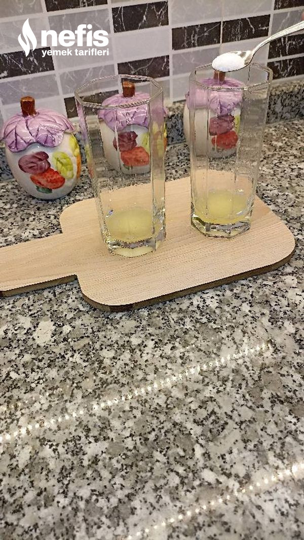 - 1 çay kaşığı tuz ekleyip karıştıralım buz ve limon diliminde ekleyip yavaşca sodayı ekleyelim taşıp dökülmemesi için.