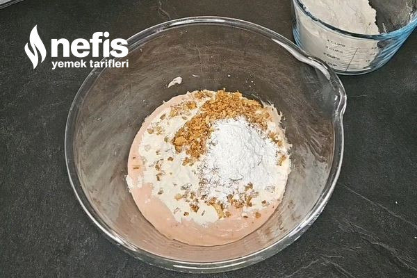 - Üzerine unu, kabartma tozunu ve çıtır soğanı ek edip ele yapışmayan bir hamur elde edelim.